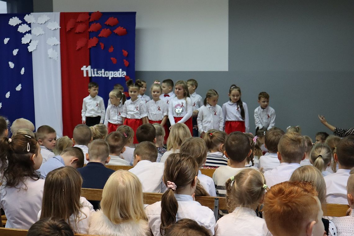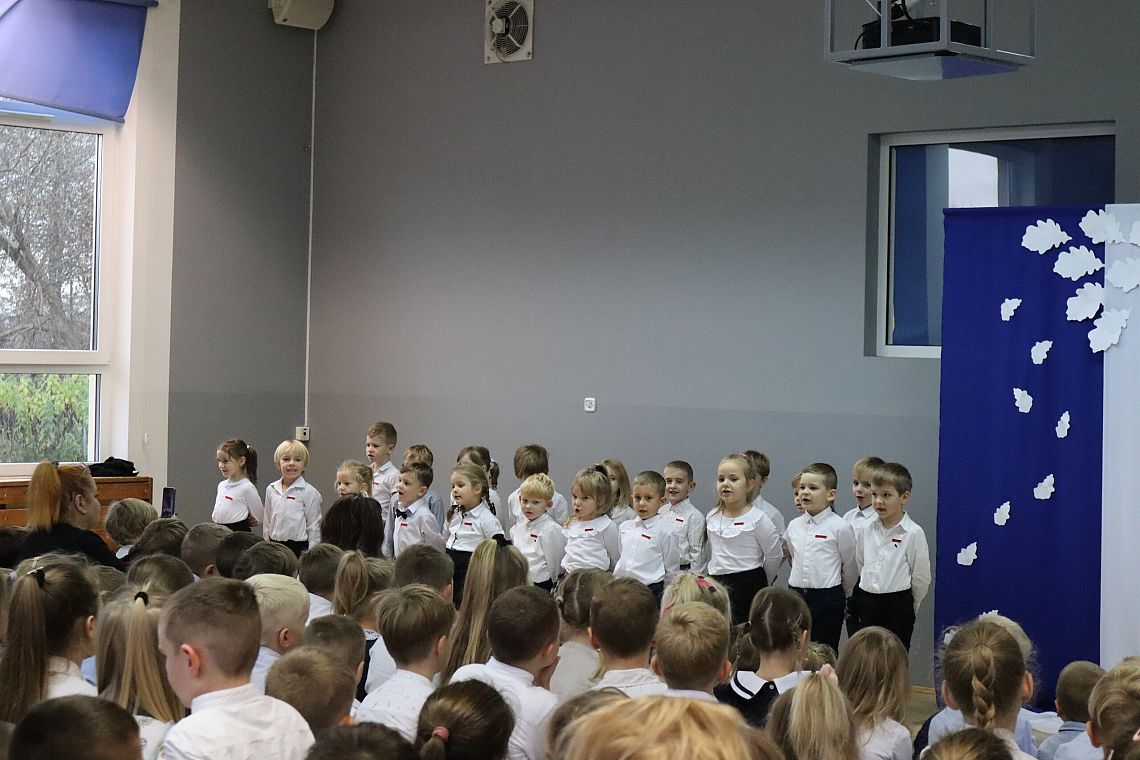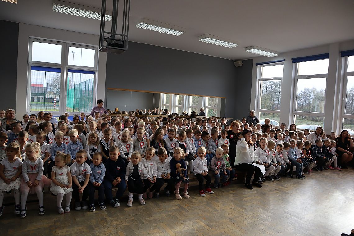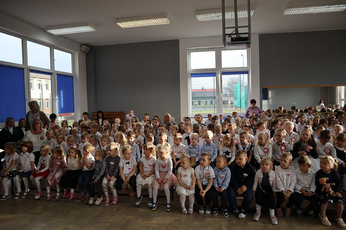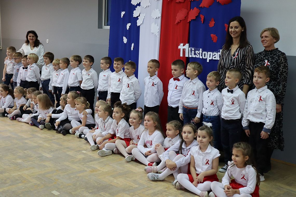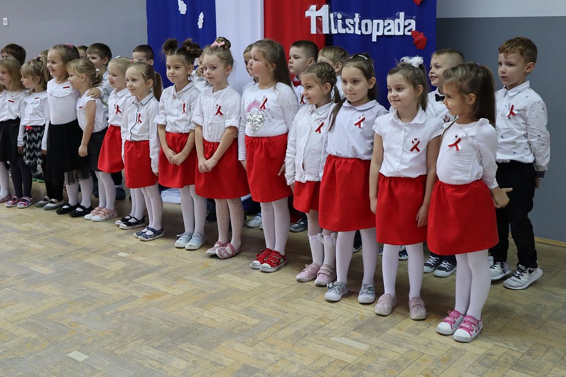 Tego samego dnia również młodsze grupy Zespołu Szkolno-Przedszkolnego miały swój uroczysty apel przygotowany przez Panie: Żanettę Klotzka oraz Magdalenę Świątek. Dzieci były wspaniale przygotowane, co pokazały tańcząc do "Walca Barbary" z "Nocy i dni" i śpiewając piosenki: "Niepodległy kraj", "Od morza do Tatr", czy "Co to jest niepodległość". Wielkie brawa dla najmłodszych, grupa 0 A i 0 C oraz dla Pań przygotowujących.