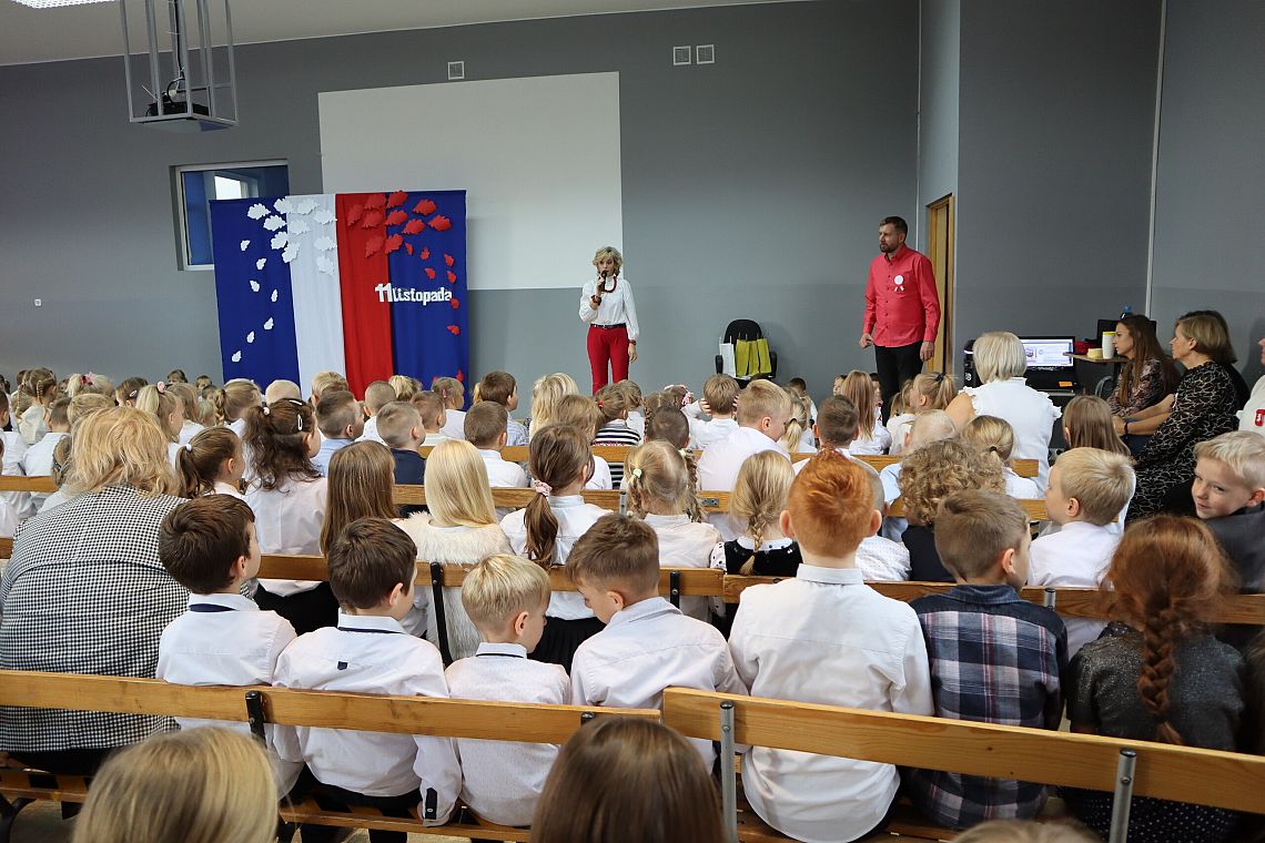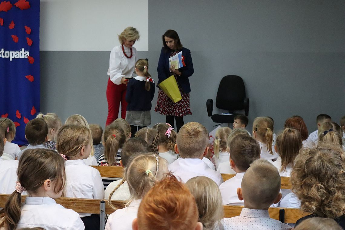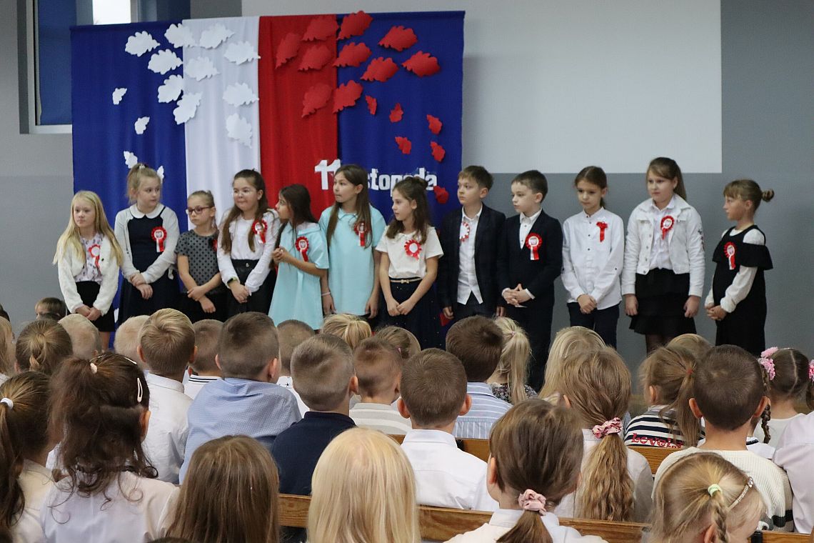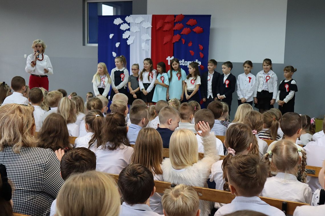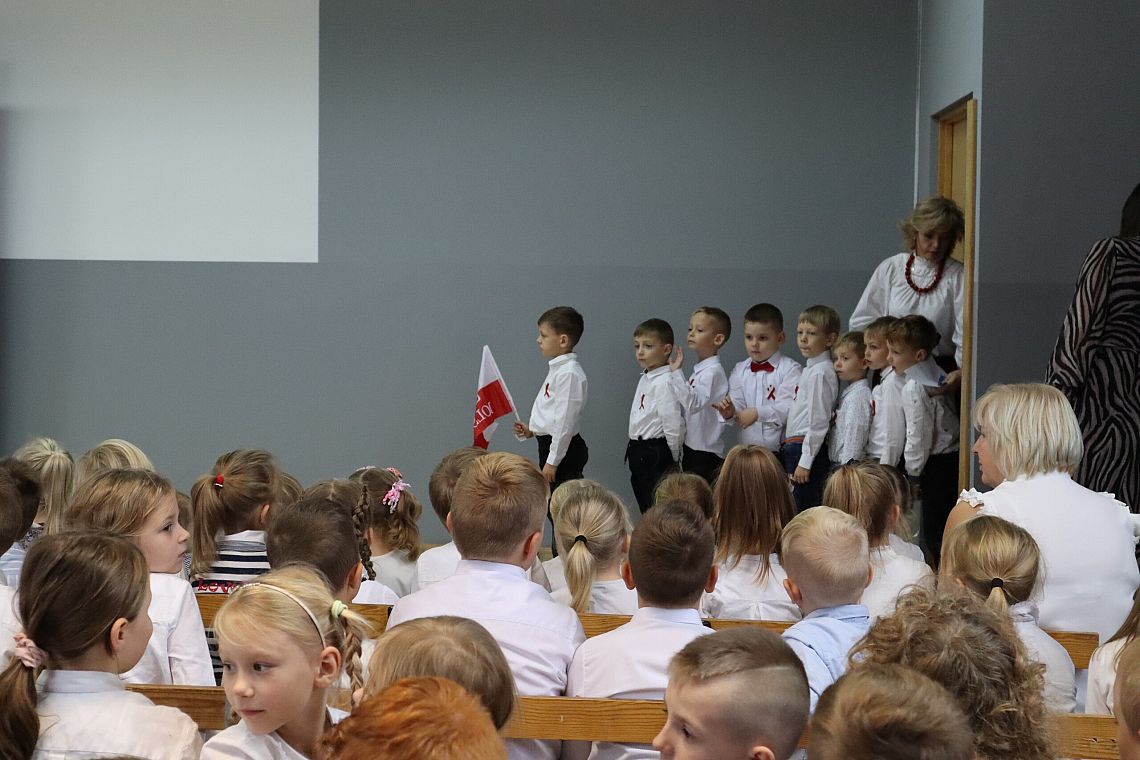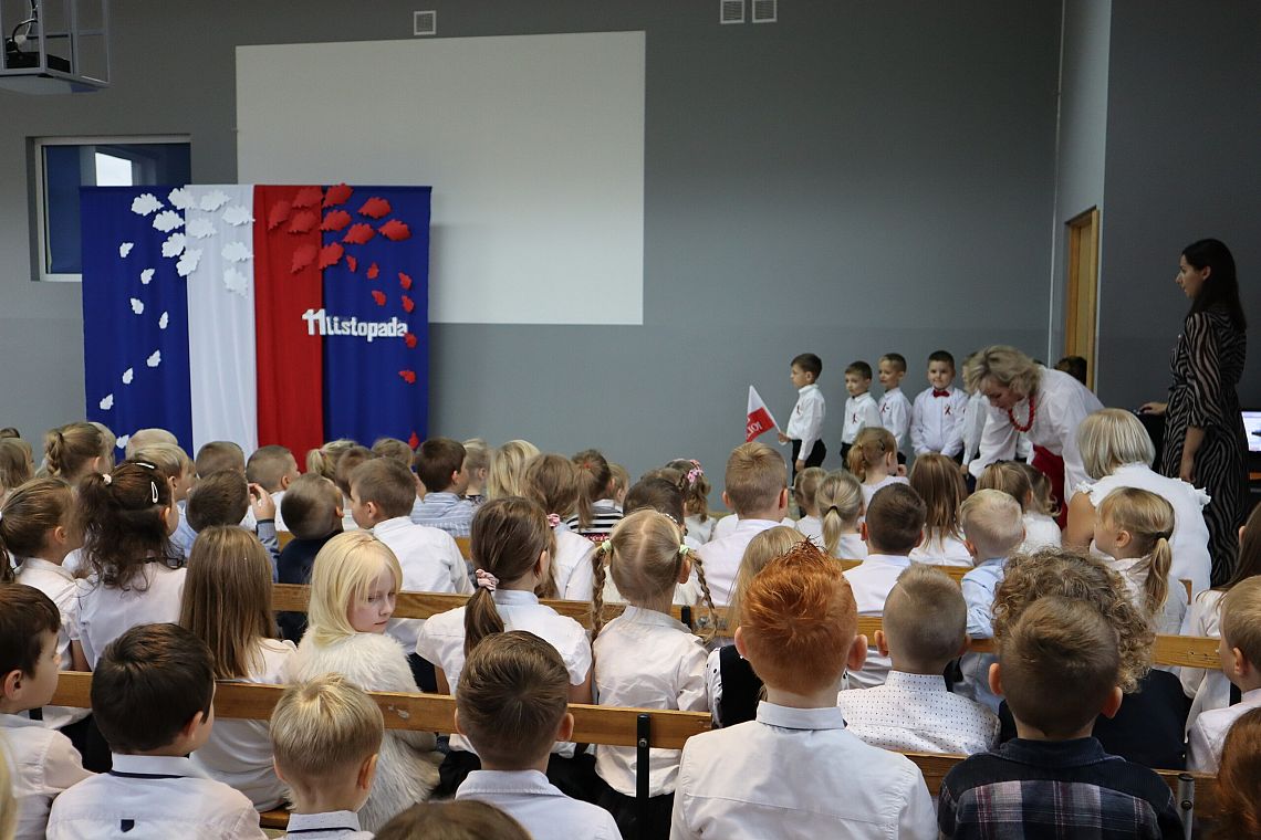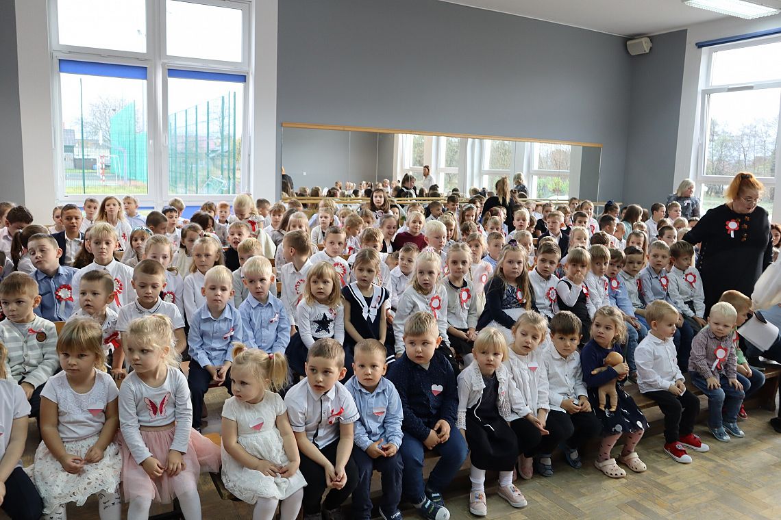 Tego samego dnia również młodsze grupy Zespołu Szkolno-Przedszkolnego miały swój uroczysty apel przygotowany przez Panie: Żanettę Klotzka oraz Magdalenę Świątek. Dzieci były wspaniale przygotowane, co pokazały tańcząc do "Walca Barbary" z "Nocy i dni" i śpiewając piosenki: "Niepodległy kraj", "Od morza do Tatr", czy "Co to jest niepodległość". Wielkie brawa dla najmłodszych, grupa 0 A i 0 C oraz dla Pań przygotowujących.