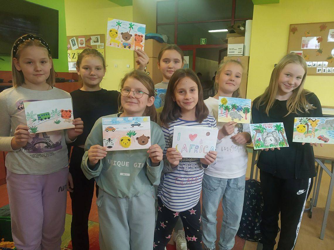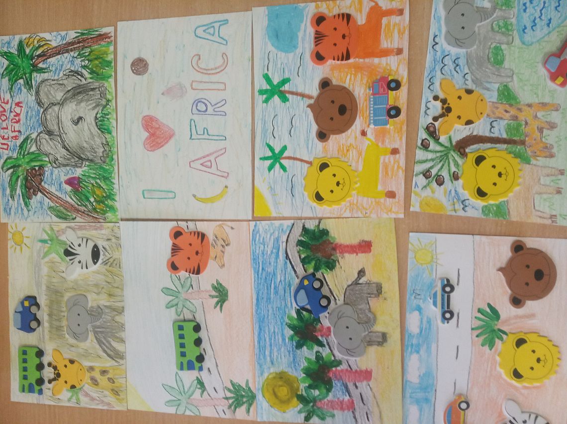Na dworze zrobiło się całkiem chłodno a dzieci w świetlicy zatęskniły za gorącym latem i afrykańskim upałem. Z tego powodu postanowiły przybliżyć sobie ciepło malując piękne prace przedstawiające Afrykę.