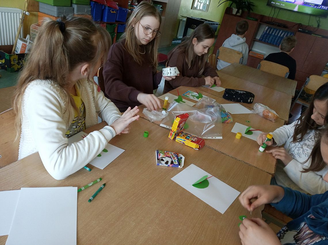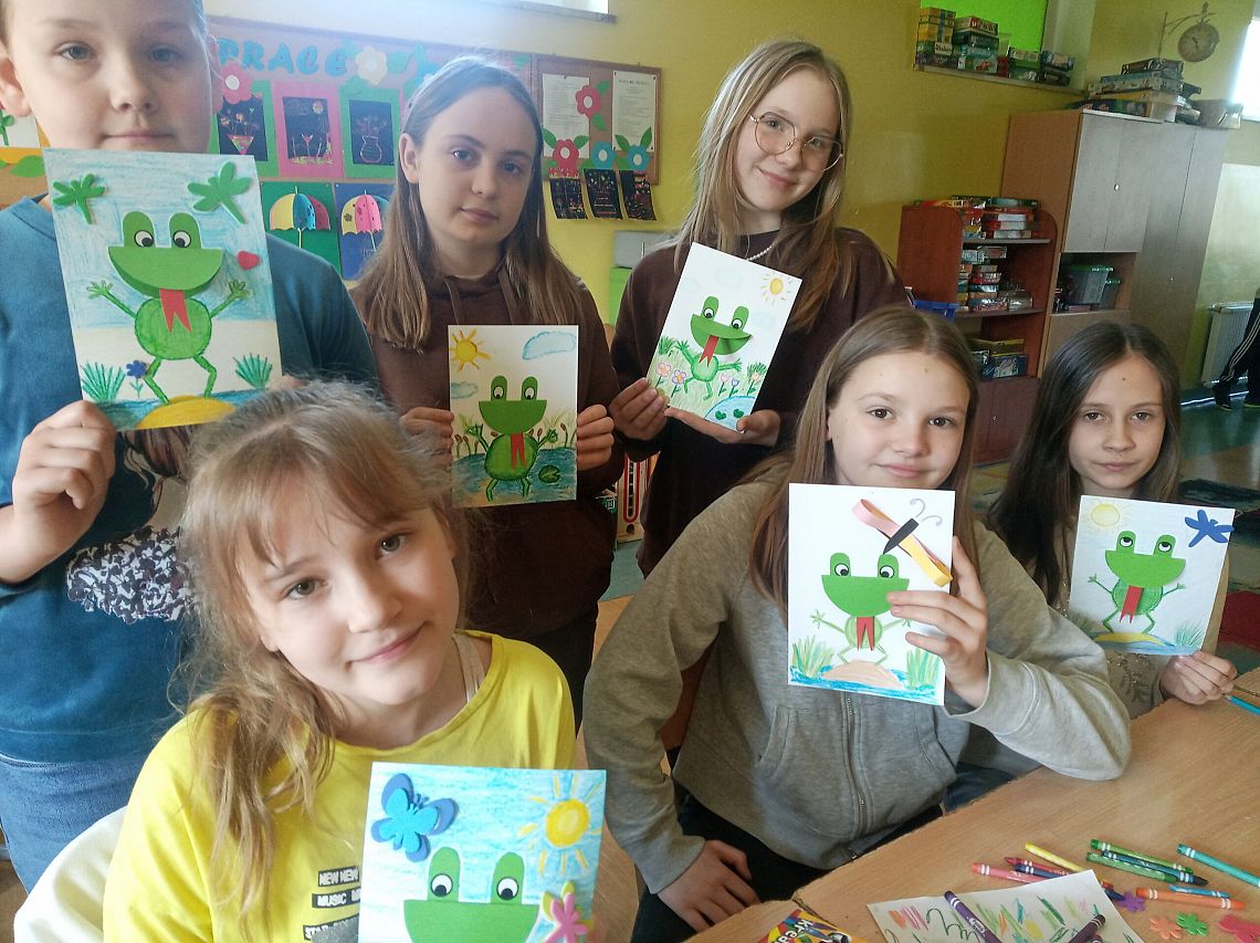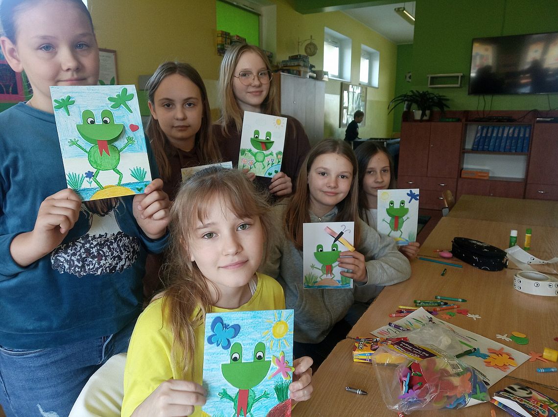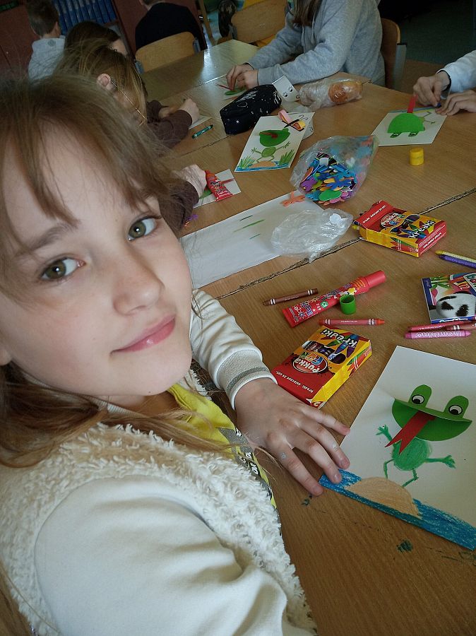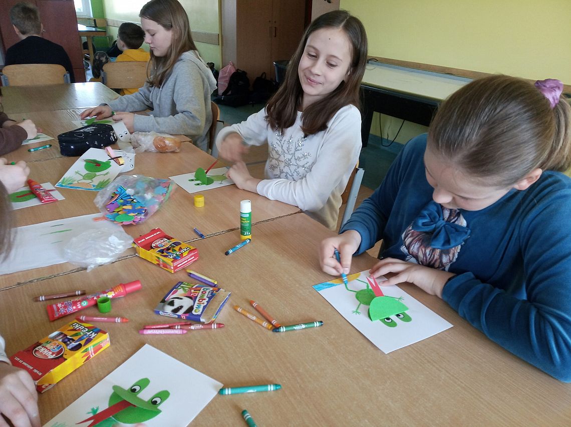 W dniu dzisiejszym odbyły się wiosenne warsztaty manualno - plasyczne na świetlicy szkolnej. Uczniowie pod opieką wychowawców świetlicy mieli okazję uczyć się od siebie oraz w miłej atmosferze wykreować postacie żabek.