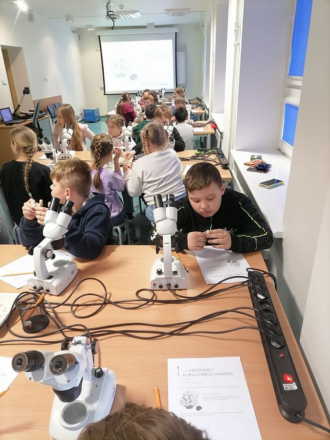13 marca 2024 r. uczniowie klas trzecich wraz z wychowawcami byli na wycieczce w Gdyni. Dzieci na nabrzeżu podziwiały dwa żaglowce: Dar Pomorza i Dar Młodzieży. Następnie uczniowie udali się do Akwarium Gdyńskiego i wzięli udział w zajęciach warsztatowych na temat rafy koralowej. Dodatkową atrakcją była praca z wykorzystaniem mikroskopów. Po zajęciach wszyscy chętnie ruszyli oglądać zgromadzoną faunę i florę.