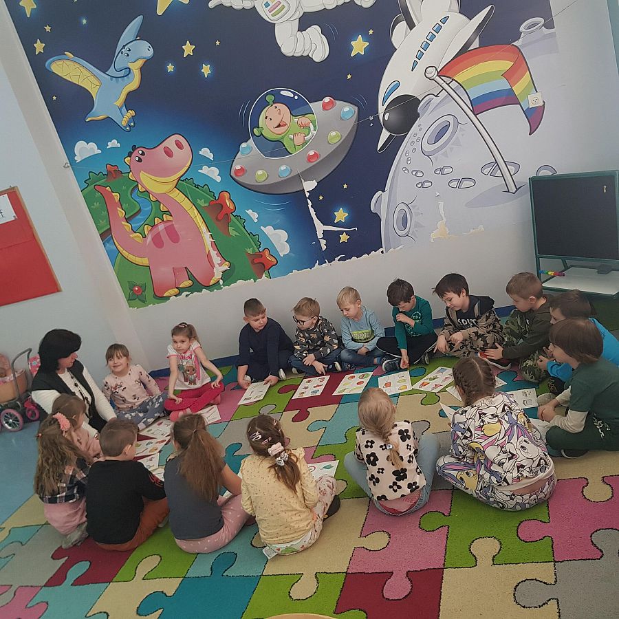 W ramach realizowanej Innowacji logopedycznej pt; „ Ćwiczę buzię ładnie, aby mówić starannie” dnia 16.02.2024 roku w grupie O „a” , O „b” odbyło się spotkanie logopedyczne, gdzie przedszkolaki usprawniały motorykę narządów artykulacyjnych oraz wzbogacały słownictwo czynne wymawiając obrazki z serii: „ Od obrazka do słowa”.