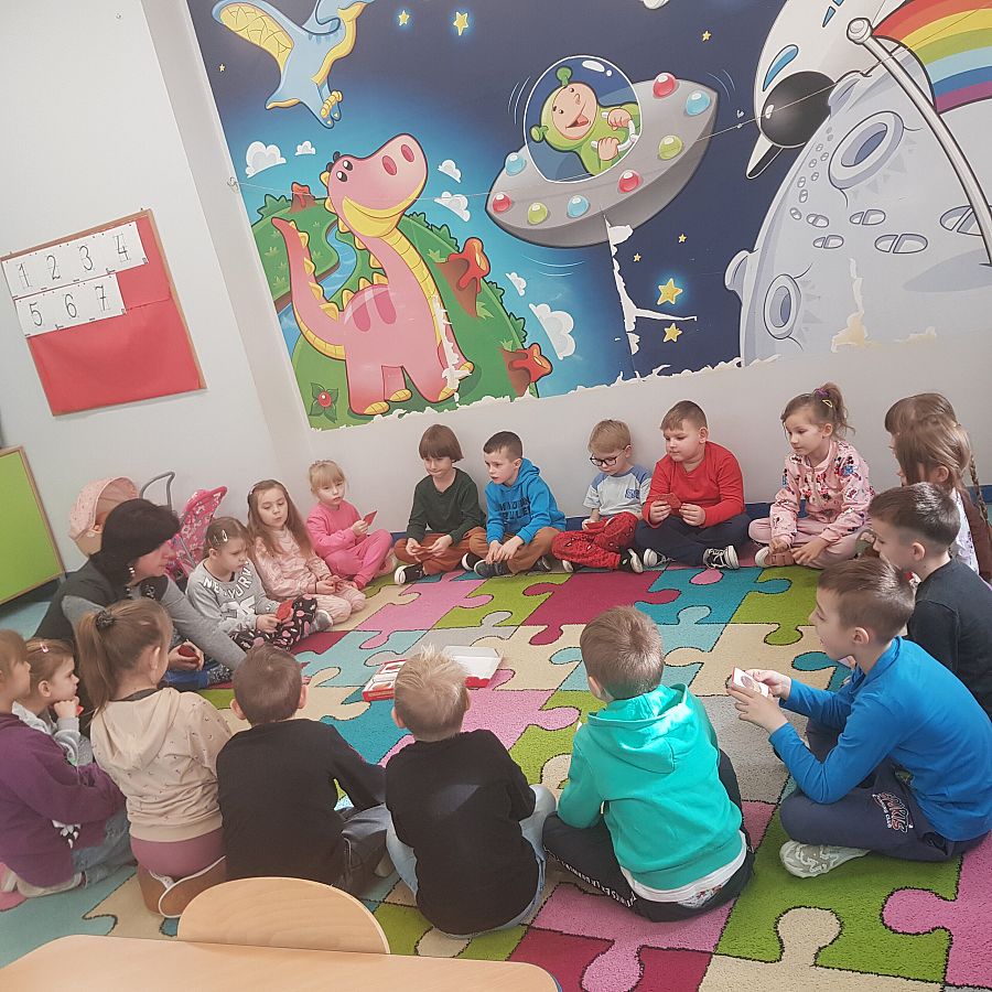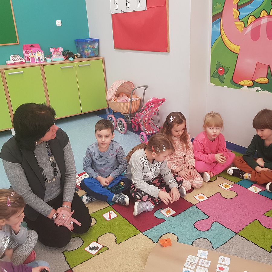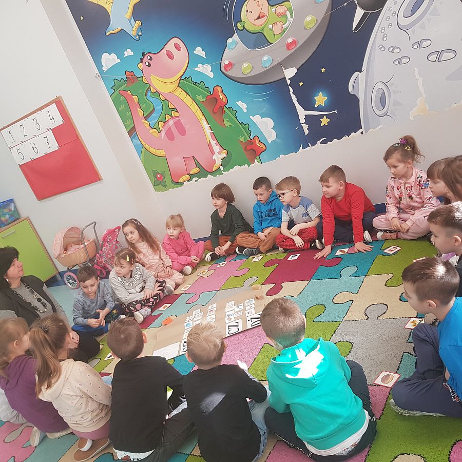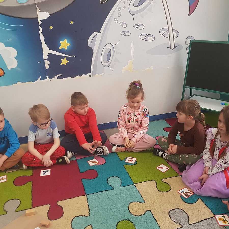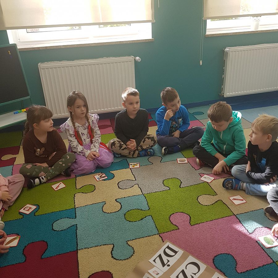 Dnia 01.03.2024 roku w grupie O „b” w ramach realizowanej Innowacji logopedycznej pt: „ Ćwiczę buzię ładnie, aby mówić starannie” na spotkaniu logopedycznym przedszkolaki nazywały obrazki z serii: „ Ładnie mówię głoski…”, gdzie przeprowadzaliśmy analizę i syntezę głosową wyrazów. Wymawialiśmy obrazki na głoski szeregu szumiącego. Podsumowaniem naszego spotkania było wykonanie zadania- grafomotorycznego, przy którym dzieci bawiły się doskonale.