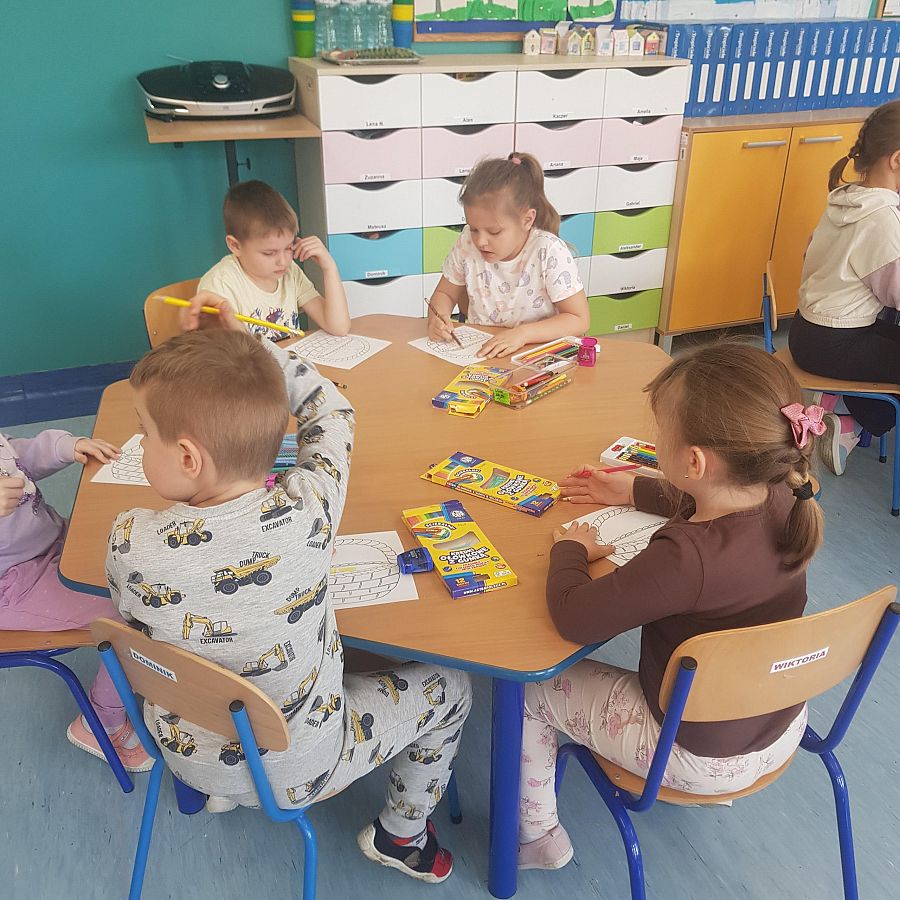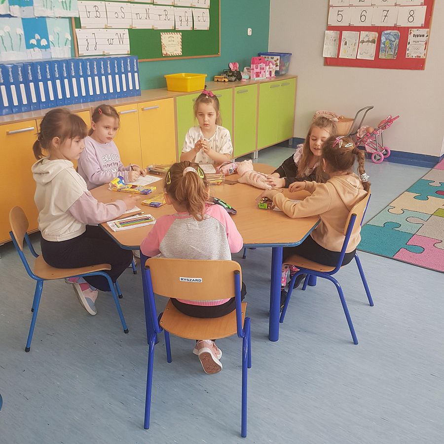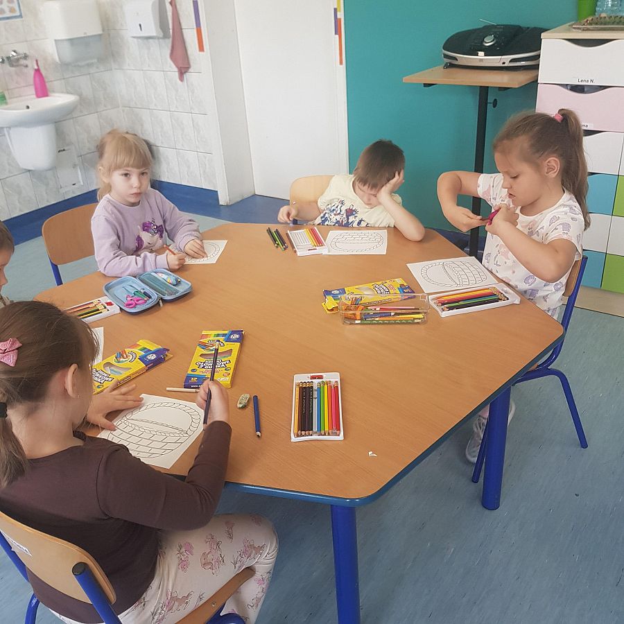 Dnia 26.04.2024 roku w ramach realizowanej Innowacji logopedycznej pt: „ Ćwiczę buzię ładnie, aby mówić starannie” zostało przeprowadzone zajęcie logopedyczne w grupie O „b”. Na zajęciu przedszkolaki wykonywały ćwiczenia usprawniające narządy artykulacyjne i ćwiczenia fonacyjne. W kolejnym zespołowej zabawie dzieci układały odpowiednio pasujące obrazki do ilustracji z serii: „Popatrz, opowiedz, ułóż”. Następne ćwiczenie polegało na narysowaniu w koszyczku przedmiotów, w których występują głoski szeregu syczącego. Zaproponowane ćwiczenia logopedyczne sprawiały przedszkolakom ogromną radość.