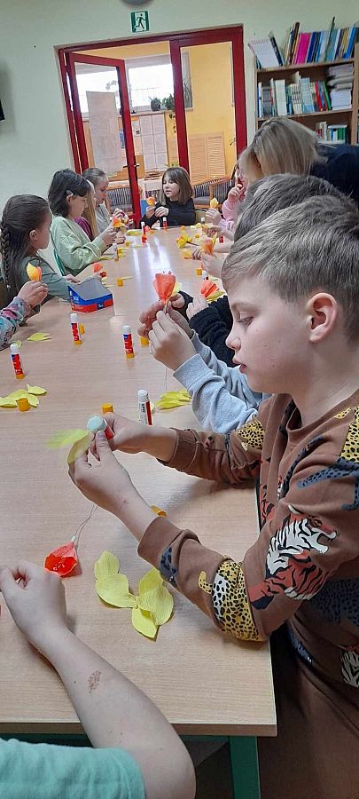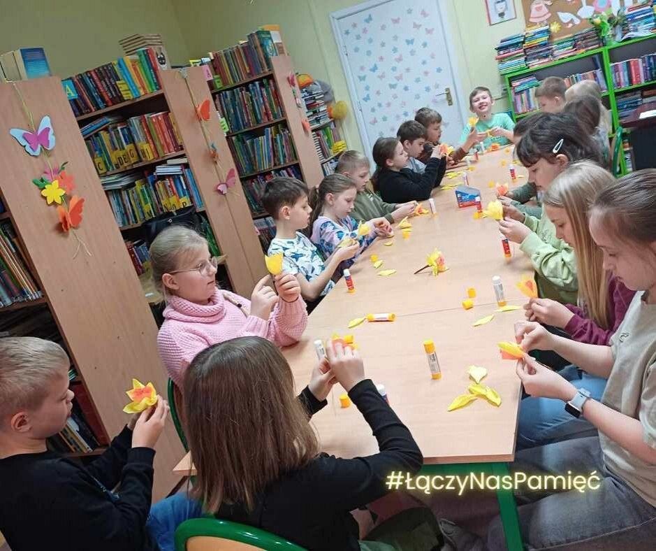 Również w bibliotece, we współpracy z Biblioteką Publiczną, odbyła się specjalna lekcja patriotyzmu oraz warsztaty tworzenia żonkili, skierowane szczególnie do klasy 3a.