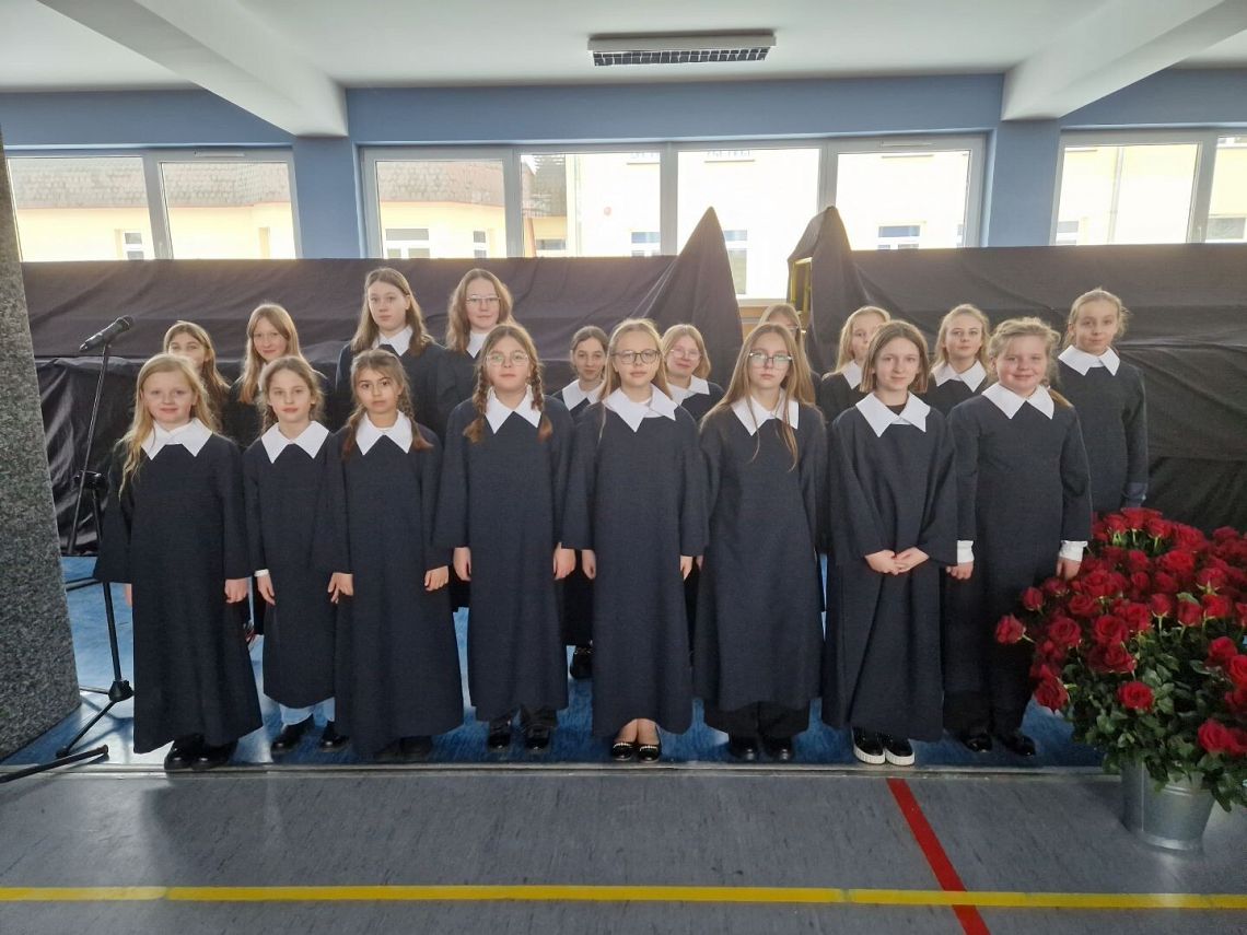 1 grudnia 2023 chór szkolny wystąpił na gali 50-lecia Gminy Łęczyce. Tego dnia nasze chórzystki po raz pierwszy zaprezentowały się w białych kołnierzykach dopasowanych do tóg. Dyrekcja szkoły, opiekun chóru, a także śpiewające dziewczęta składają ogromne podziękowania pani Magdalenie Bogusz za przepiękny wkład w upiększenie stroju chóralnego.