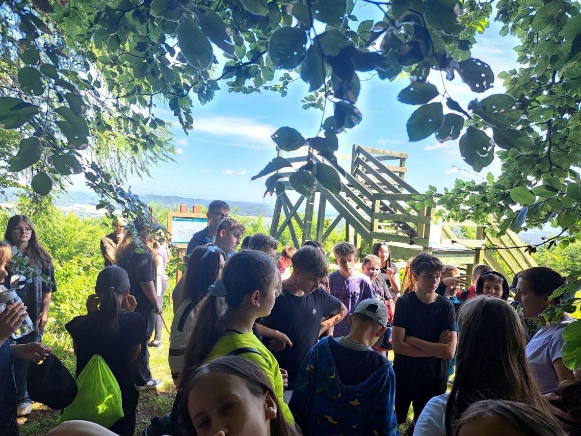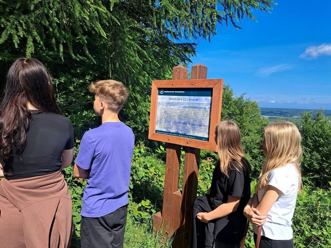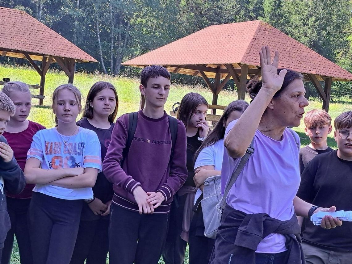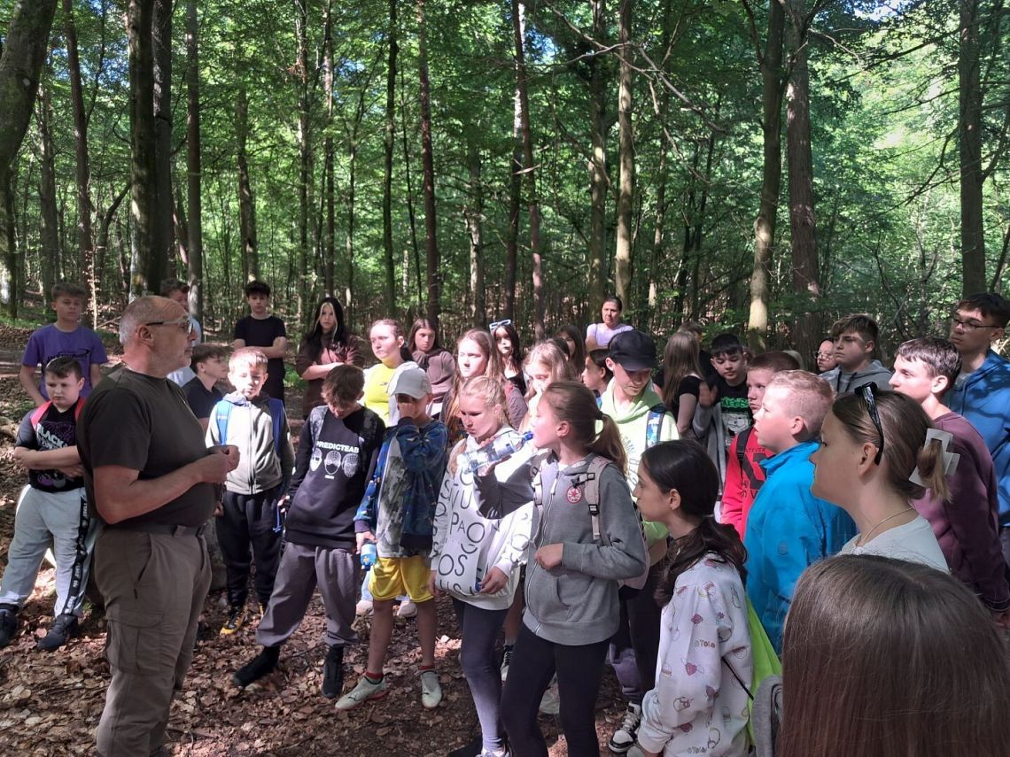 Po ścieżce oprowadził nas Leśniczy. Przedstawił zagadnienia związane z ochroną przyrody. Na trasie poznaliśmy stanowiska dydaktyczne: Rezerwat przyrody Paraszyńskie Wąwozy, Jelenią Górę oraz Źródliska.
