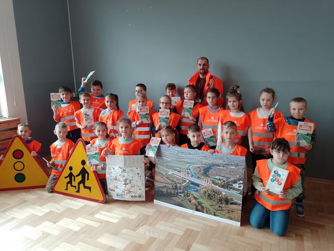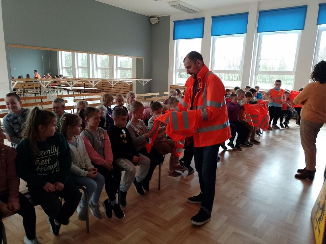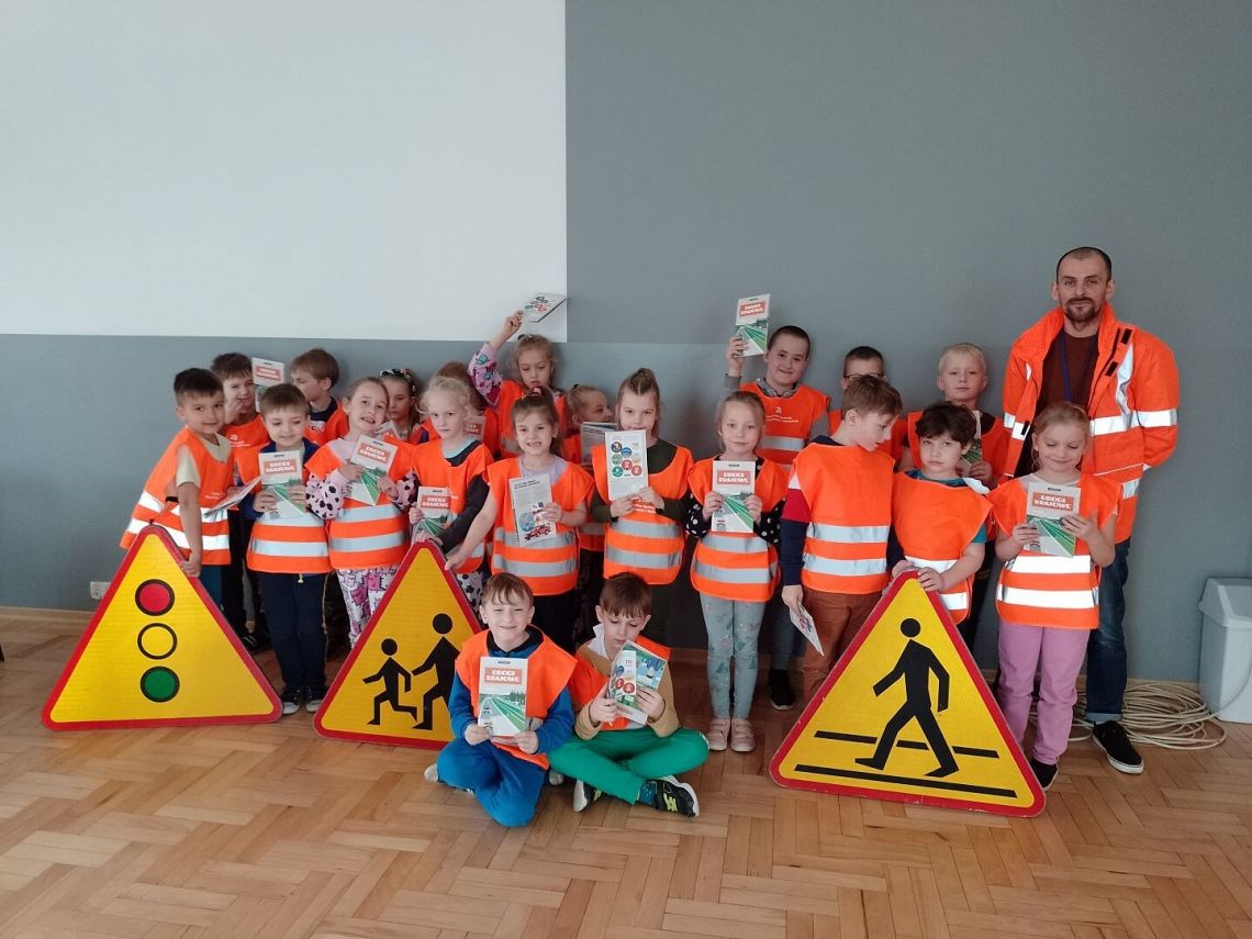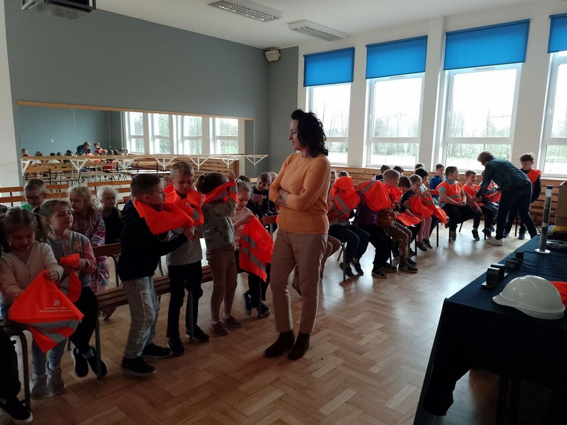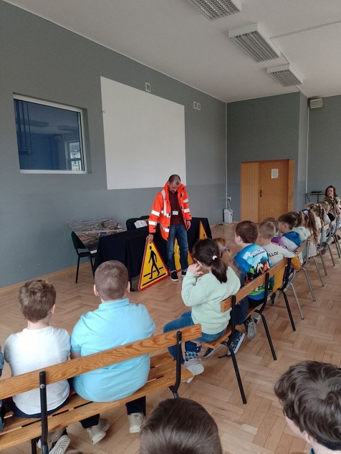 W piątek 05.04.2024 r. obyło się spotkanie klas pierwszych z przedstawicielem Generalnej Dyrekcji Dróg Krajowych i Autostrad na temat bezpieczeństwa w ruchu krajowym. Podczas spotkania omówiono zasady bezpiecznego poruszania się po drogach, przechodzenia przez jezdnię oraz potrzebę noszenia odblasków. Zostały również przybliżone tajniki budowy nowych tras i materiałów, z których powstają. Dzieci z chęcią brały udział w spotkaniu, zadawały pytania i przytaczały własne przykłady w omawianych tematach. Na koniec pierwszoklasiści otrzymali w prezencie kamizelkę odblaskową i Niemapę Polski. Dziękujemy