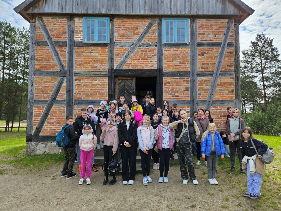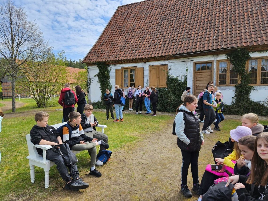 27 kwietnia 2024 r. uczniowie, którzy w naszej szkole uczą się j. kaszubskiego, w ramach zajęć wybrali się na wycieczkę do skansenu Kaszubskiego Parku Etnograficznego im. T. i I. Gulgowskich we Wdzydzach Kiszewskich. Oprócz zwiedzania (poznawania kultury materialnej i duchowej Kaszub) uczestniczyli w warsztatch: "Lekcji języka kaszubskiego" oraz "Malowaniu na szkle".
