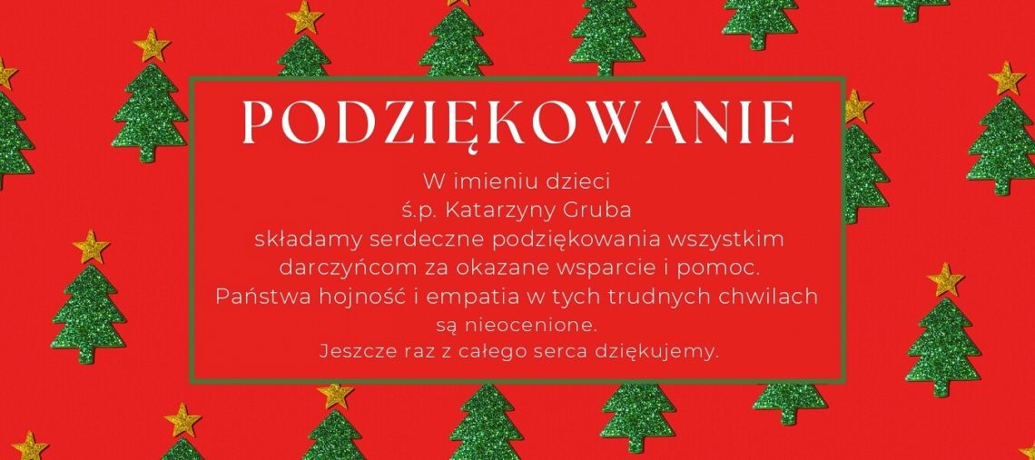 Podziękowanie za wsparcie dzieci śp. Katarzyny Gruba