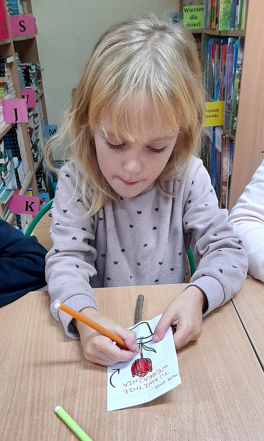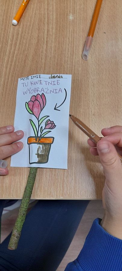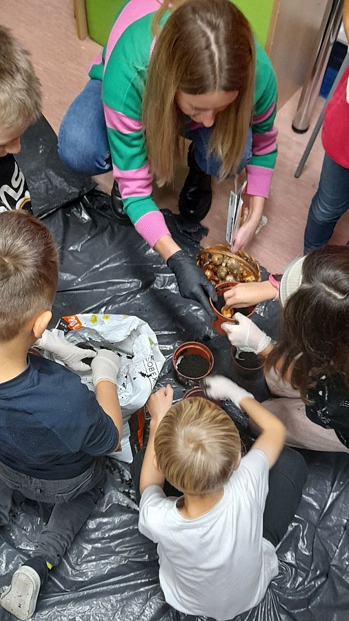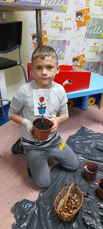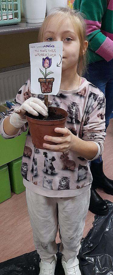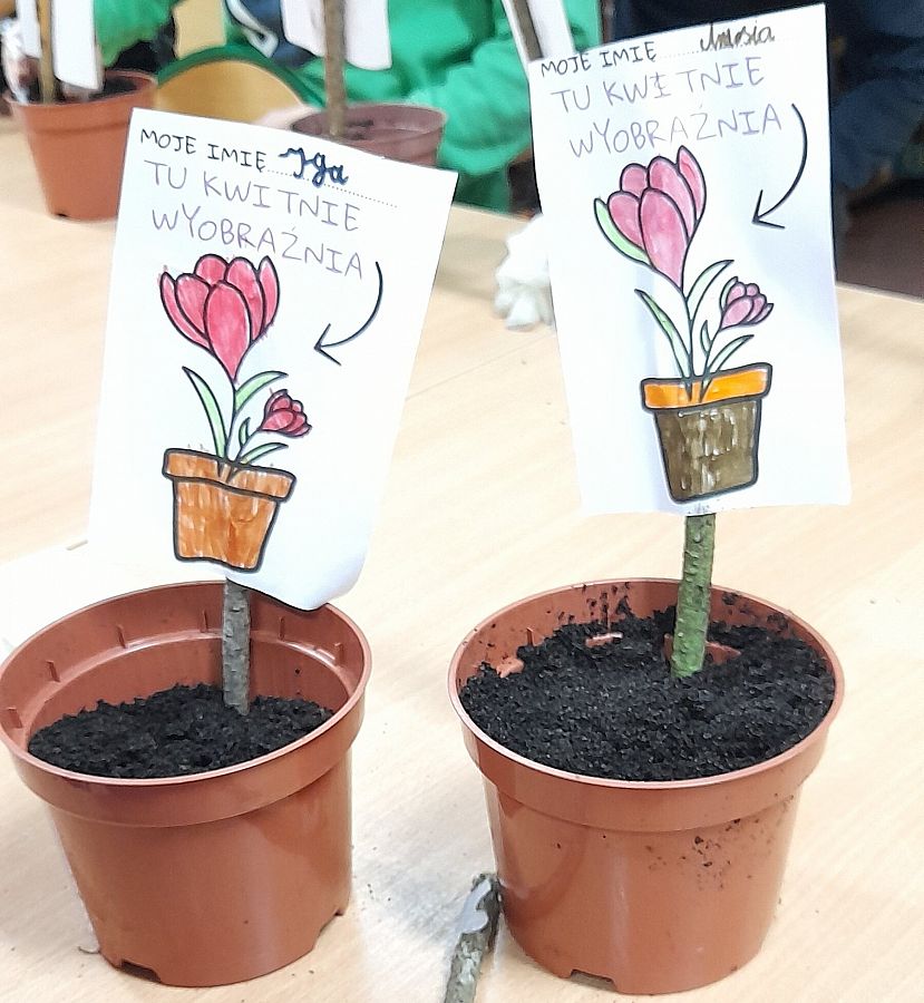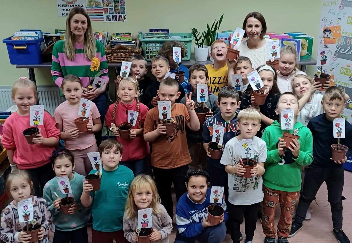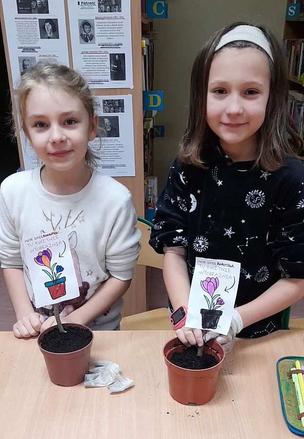 „Biblioteka - tu kwitnie wyobraźnia!” W dniu dzisiejszym hasło tegorocznych obchodów Miesiąca Bibliotek Szkolnych, zainspirowało uczniów z klasy 2 a do zabawy w ogrodników. Pod fachowym okiem Pani Estery Jędrzejewskiej, która prowadzi „Kwiaciarnię Polna” w Bożympolu oraz sprawuje funkcję radnej w naszej gminie, uczniowie posadzili w doniczkach cebulki wiosennych kwiatów. Pani Estera zaprosiła również dzieci do pogawędki na temat pięknego i pachnącego świata kwiatów. Sprawiła, że poczuliśmy się jak w kwiaciarni i wyobraziliśmy sobie, ile cierpliwości i wyobraźni wymaga praca kwiaciarki. Bardzo serdecznie dziękujemy pani Esterze za poświęcony czas i upominki (także te słodkie: ) i obiecujemy opiekować się posadzonymi roślinkami, żeby na wiosnę cieszyć się ich pięknem.