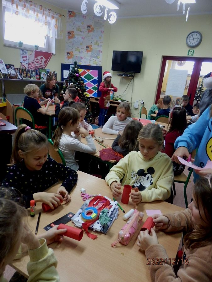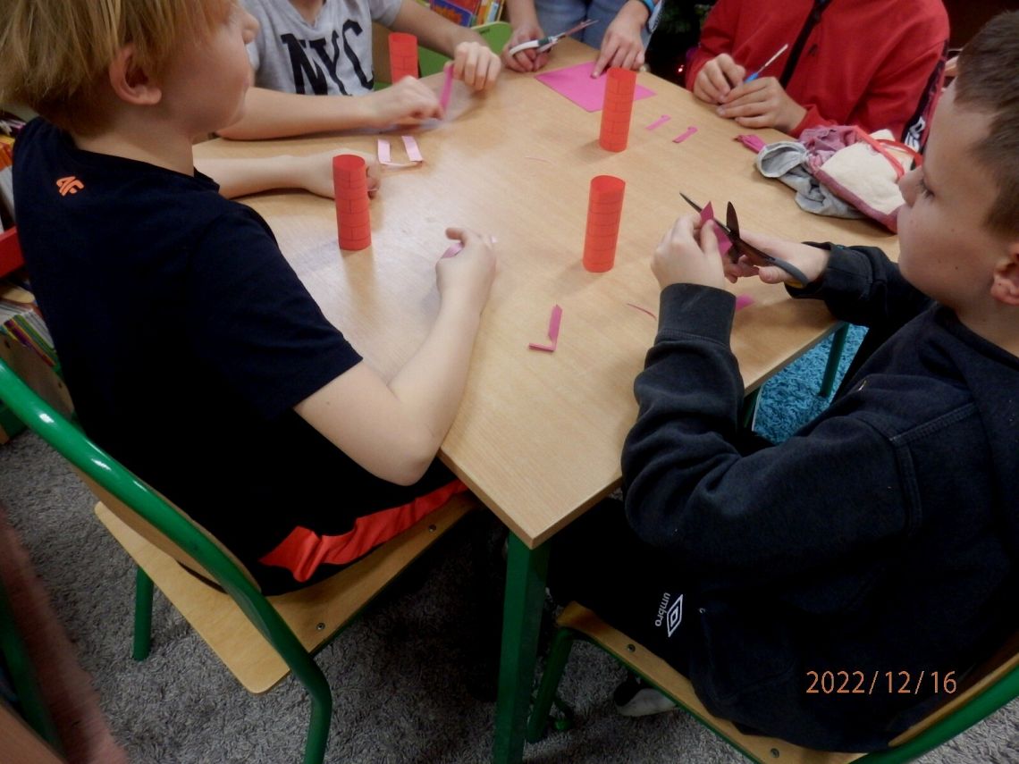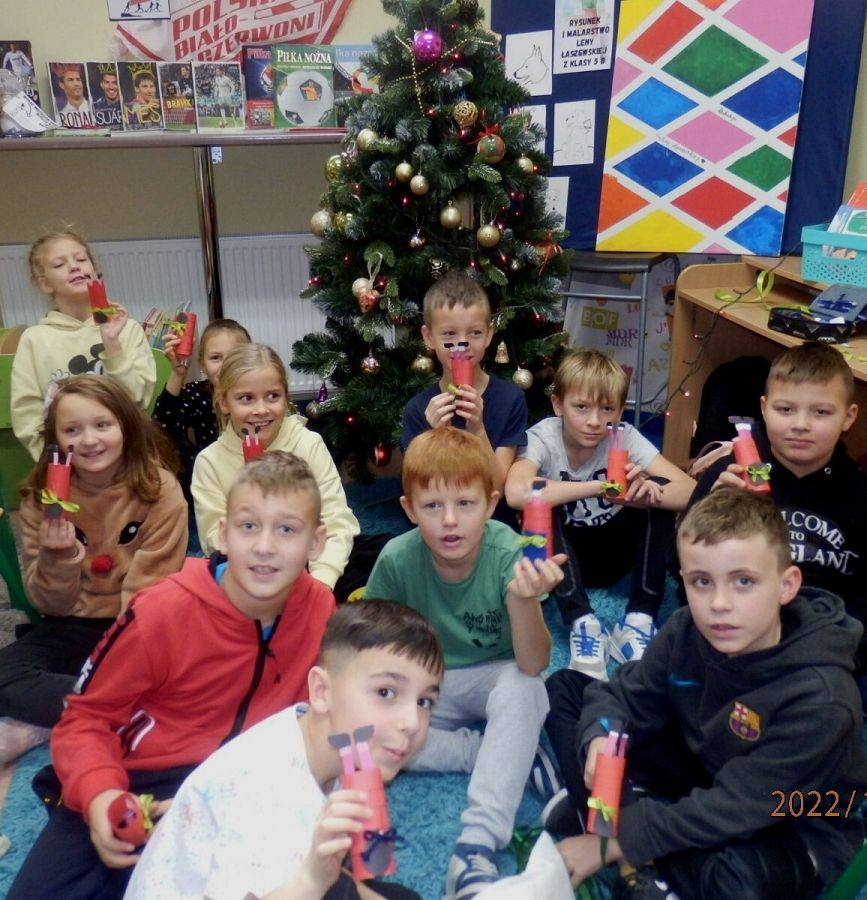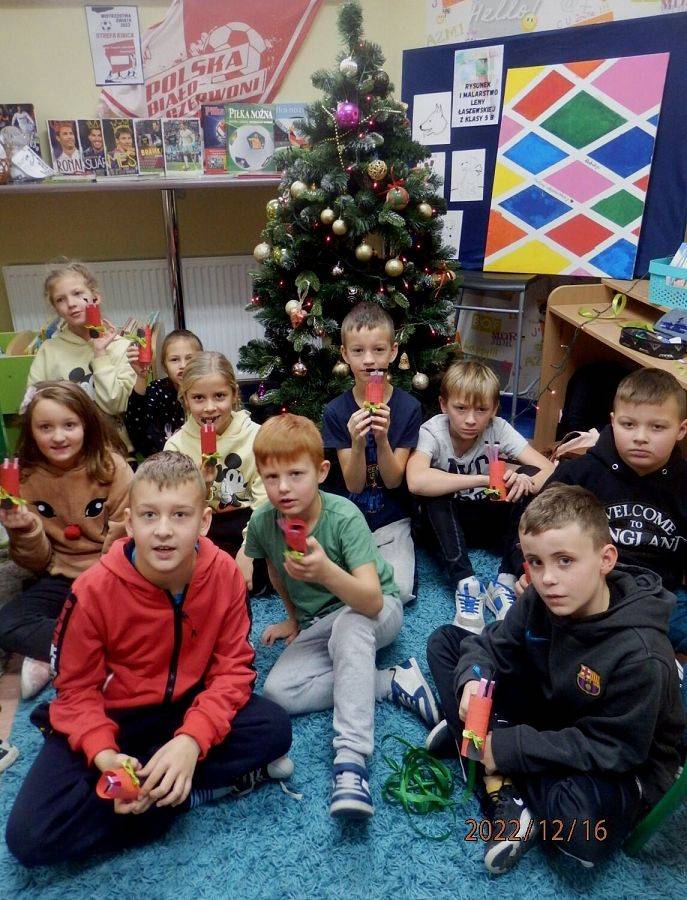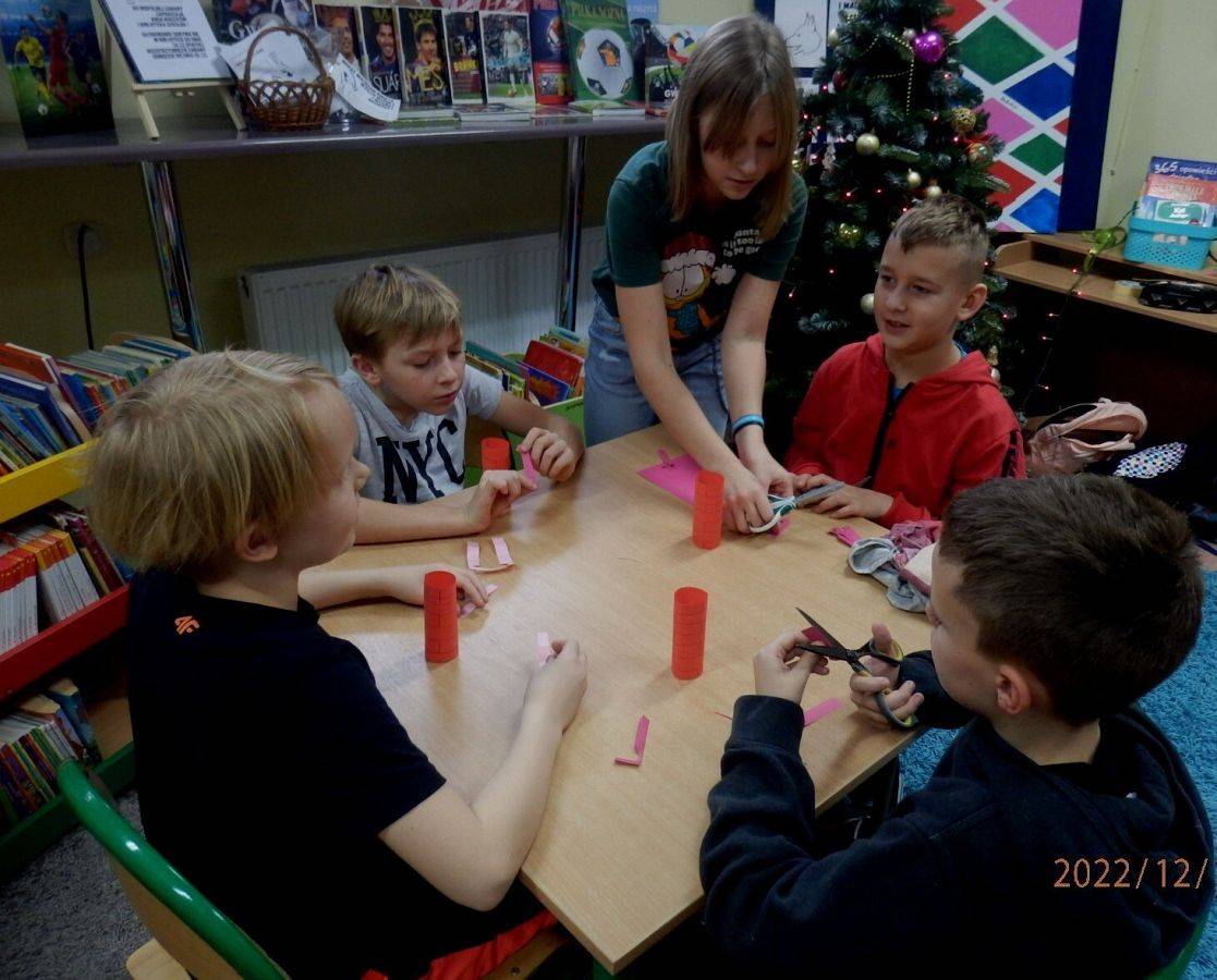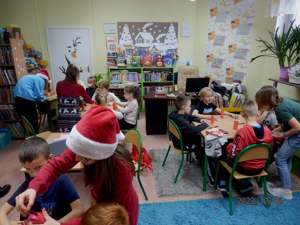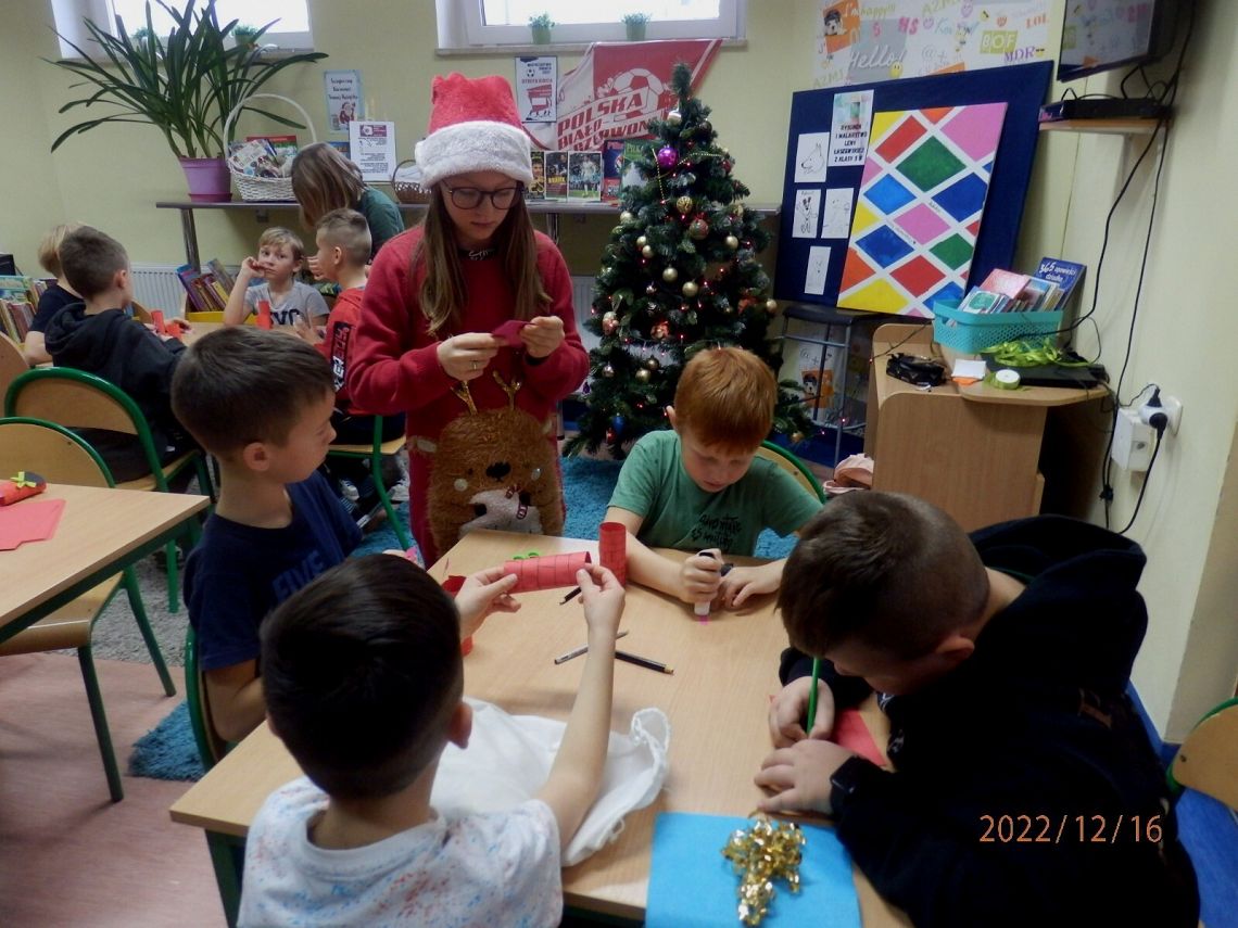 Tak, to Mikołaj…, którego dzisiaj w bibliotece wykonali uczniowie z klasy 2 b, pod kierunkiem starszych uczennic Ani, Emilki, Natalii i Patrycji.