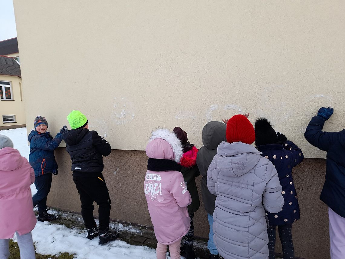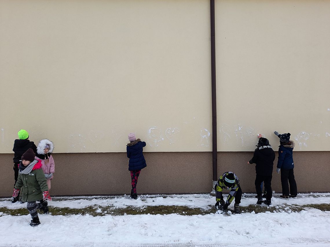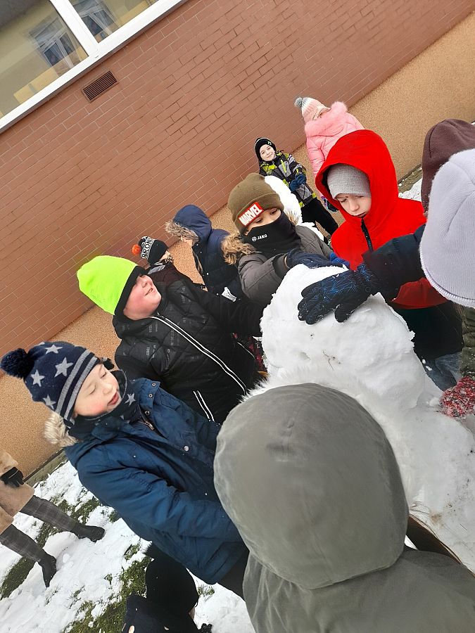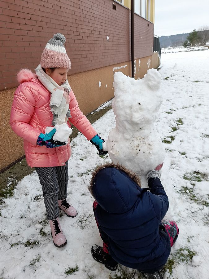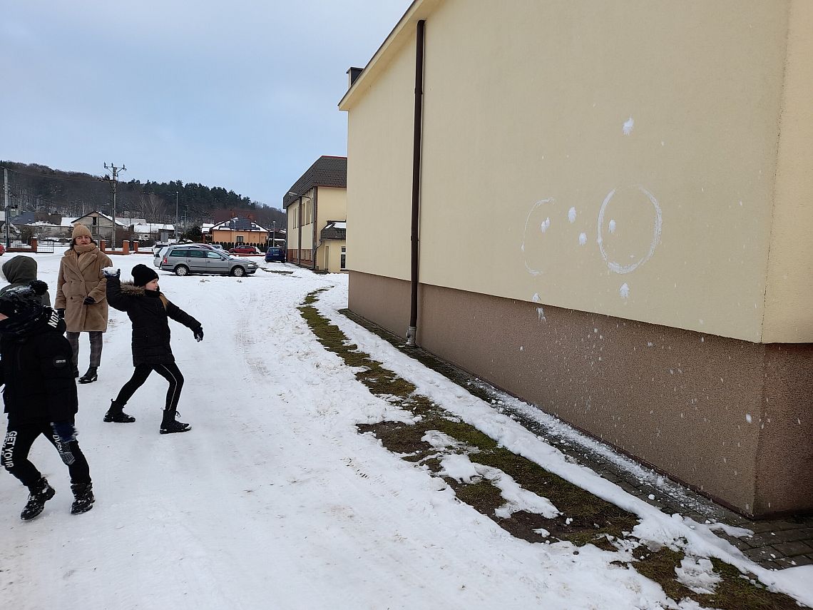 A, gdy za oknem śnieg, to nie ma co siedzieć w klasie, tylko realizować kolejne działania związane z projektem. Zatem we wtorek, uczniowskim szaleństwom na powietrzu  nie było końca. Bitwa na śnieżki, zawody saneczkarskie, malowanie śniegiem akcentów związanych z książką, a na koniec lepienie ze śniegu dzieci z Bullerbyn, to jest to ...co  uczniowie lubią zimą najbardziej.