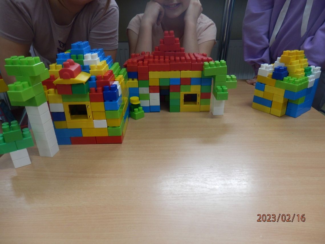 Główkujemy, jakby tu kreatywnie omówić lekturę.... i mamy to! Trzy położone obok siebie domy (zagrody), gdzie rozgrywała się akcja powieści. Wykonane z klocków, przez dzieci - ale nie z Bullerbyn- tylko z klasy 3 b.