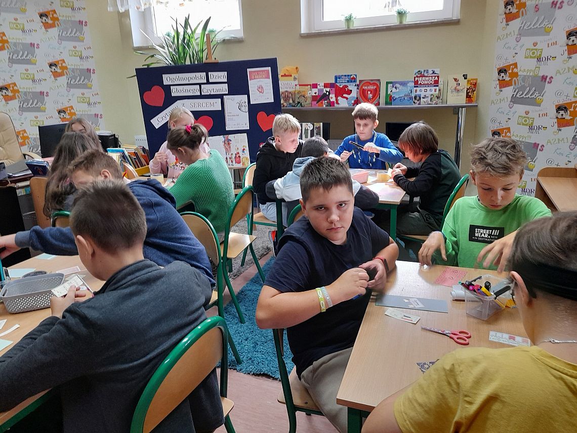 Za nami pierwsze spotkanie realizowane w ramach II edycji Ogólnopolskiej Akcji Czytelniczej "Czytamy z SERCEM". W akcji uczestniczy klasa 6 b, która dzisiaj w bibliotece wykonała piękne zakładki do książek.