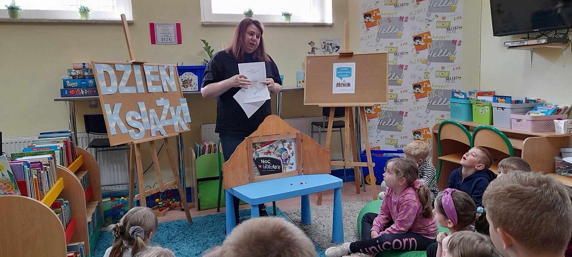 Podczas wizyty dzieci dowiedziały się, jak korzystać z biblioteki. Panie bibliotekarki opowiadały im o tym, jak dbać o książki, jak je wypożyczać i jak zachowywać się w bibliotece. Dzieci miały także możliwość obejrzenia różnych rodzajów książek. Największe zainteresowanie wzbudziły kolorowe książeczki z obrazkami, książki interaktywne i książki dźwiękowe. Dzieci z zachwytem oglądały również przedstawienia, w teatrzyku kamishibai, pełne pięknych ilustracji i ciekawych opowieści.