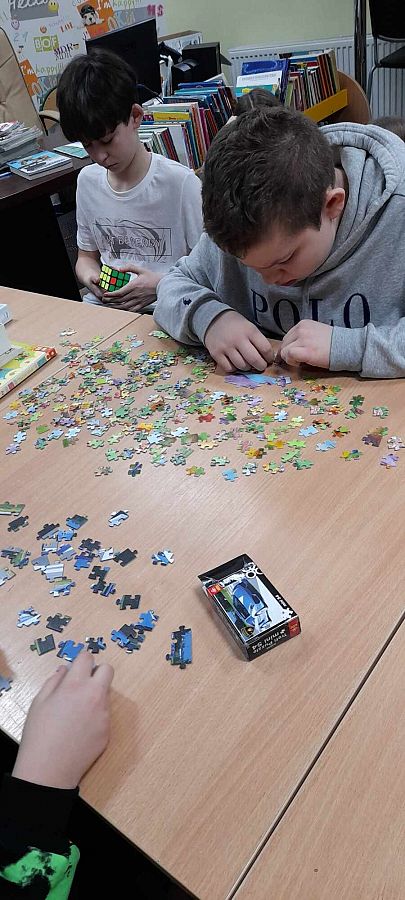 29 stycznia, obchodzimy Dzień Łamigłówki, a w naszej bibliotece już dziś panowała atmosfera skupienia i rozwiązywania zagadek. Na przerwach między lekcjami, uczniowie (nawet ci starsi:) z zapałem układali puzzle, grali w szachy, karty, układali kostkę Rubika, wprowadzając tym samym ...radość i wyzwanie do szkolnej codzienności.