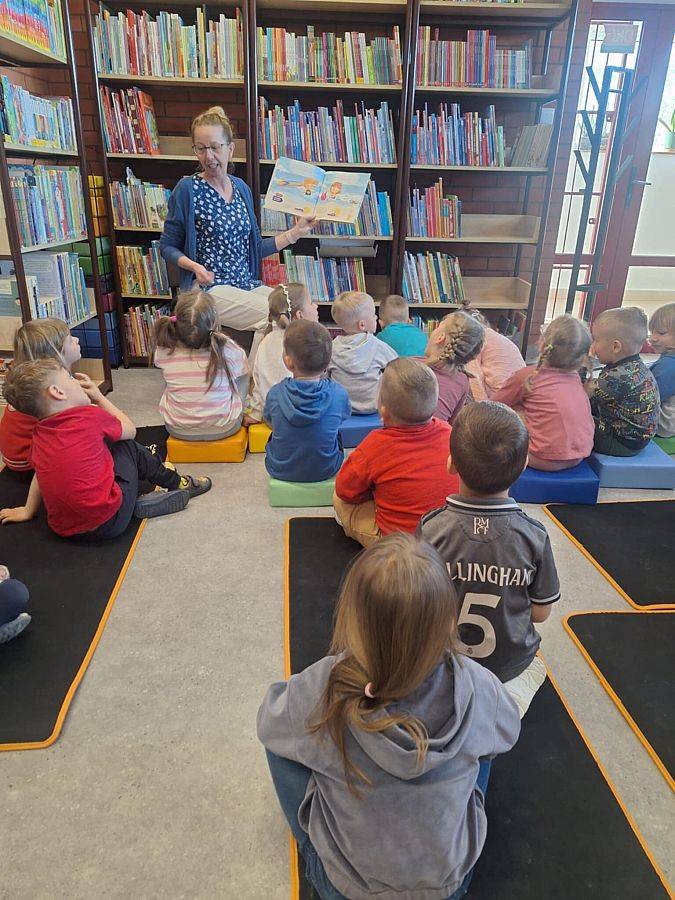 Z tej okazji gościliśmy Panią Justynę – szkolną pielęgniarkę – oraz grupę przedszkolaków z 0E. Czytaliśmy książkę „Balans na fali” Igi Majewskiej, opowieść łączącą morską przygodę z ćwiczeniami. Lekturę, pomagającą dzieciom rozwijać zdrową postawę i radość z ruchu.