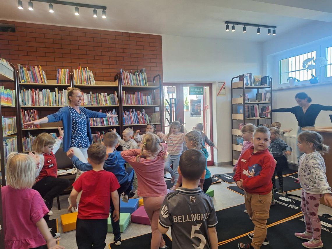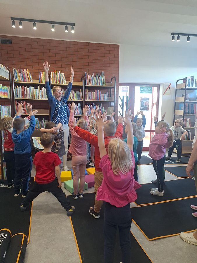 Po lekturze przyszedł czas na aktywność fizyczną – dzieci z zaangażowaniem wykonywały ćwiczenia, inspirowane pilatesem . Było mnóstwo śmiechu, energii i dobrej zabawy!