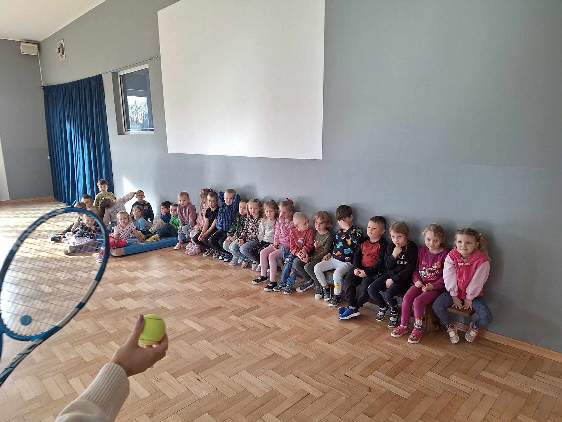 W przeprowadzeniu zajęć pomogły nam Marcelina i Amelia, które z zaangażowaniem przybliżyły dzieciom zasady gry i opowiedziały o największych gwiazdach tenisa.