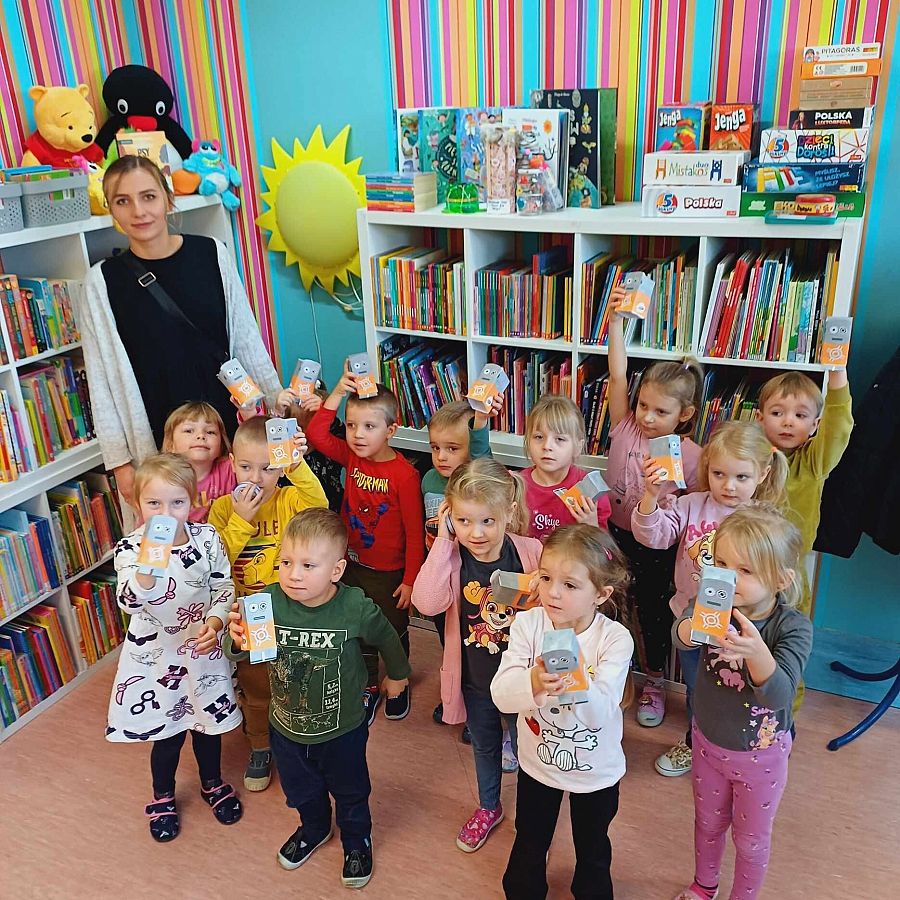 W bibliotece odbyło się kolejne spotkanie przedszkolaków z grupy 0 E w ramach projektu "Sensoryczny kogel-mogel". Tym razem, aby uczcić Dzień Wynalazcy, poświęciliśmy czas na rozmowę o wynalazkach. Opowieść o Robocie Robercie z książki Zofii Staneckiej wciągnęła dzieci w świat fantazji, dostarczając im niezapomnianych chwil. Dodatkowo, aby rozbudzić ich wyobraźnię i umiejętności artystyczne, maluchy miały okazję tworzyć własne papierowe roboty. Na zakończenie spotkania dzieci przeniosły się w świat komunikacji, korzystając z telefonu na kablu, rozmawiając i dzieląc się swoimi wrażeniami.