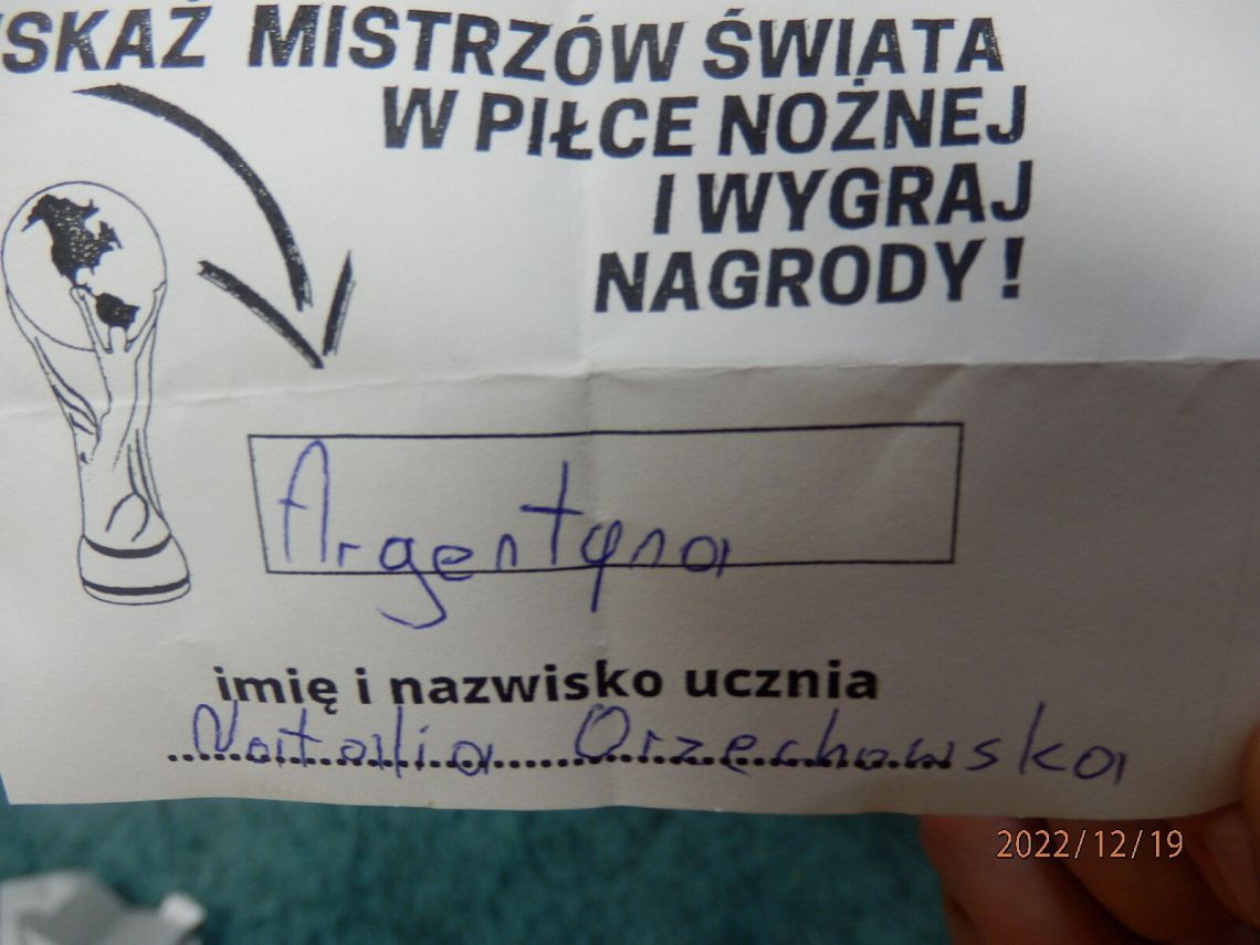 Gratulujemy Argentynie i naszym zwycięzcom. Zapraszamy do biblioteki po nagrody ufundowane przez Radę Rodziców!