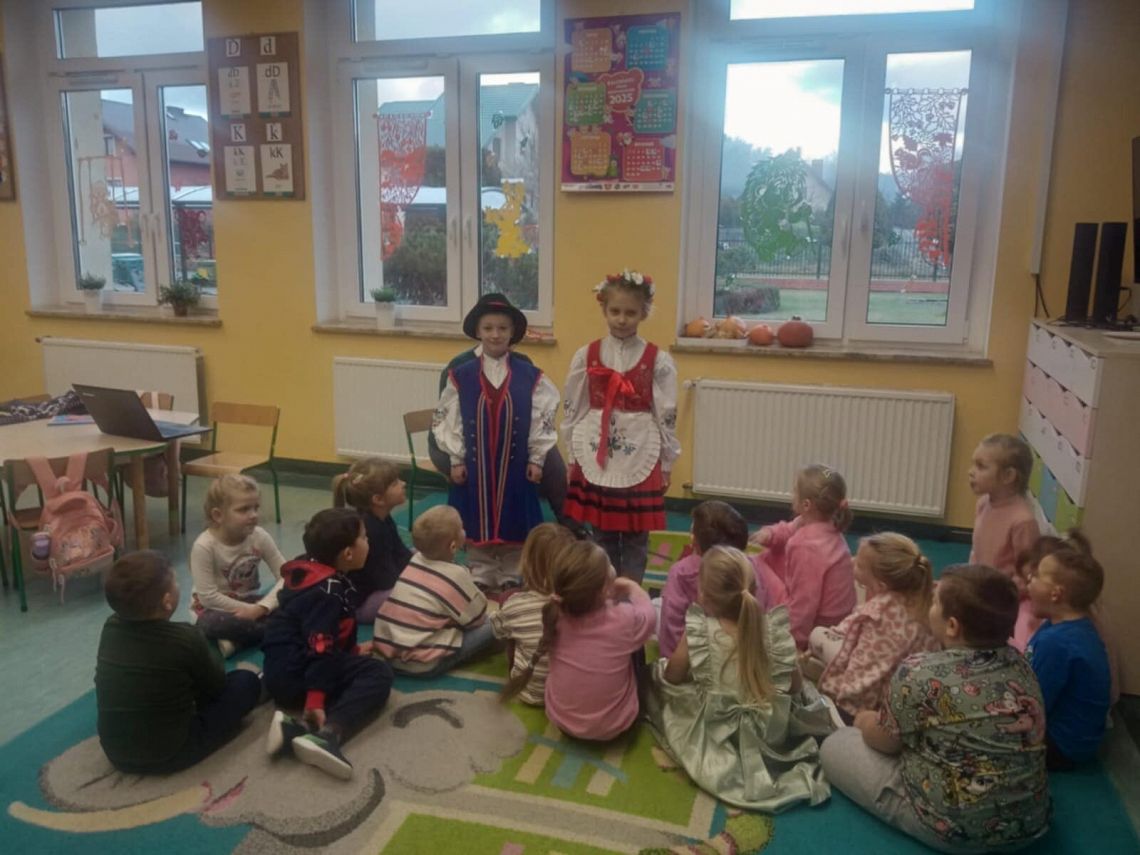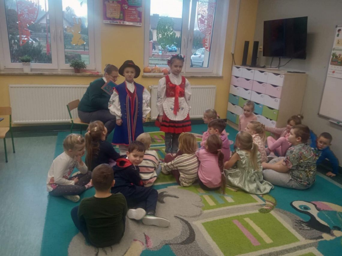 Lekturę przeczytała dzieciom Pani Mirka, nauczycielka języka kaszubskiego, która wprowadziła najmłodszych w świat folkloru kaszubskiego. Przedszkolaki zobaczyły, jak wygląda tradycyjny strój kaszubski, a nawet mogły go na chwilę… założyć! Radości nie było końca!