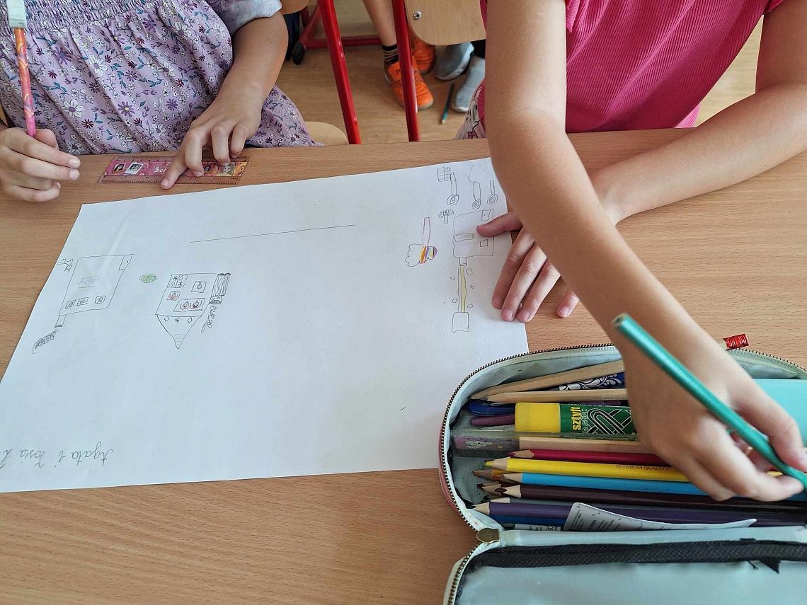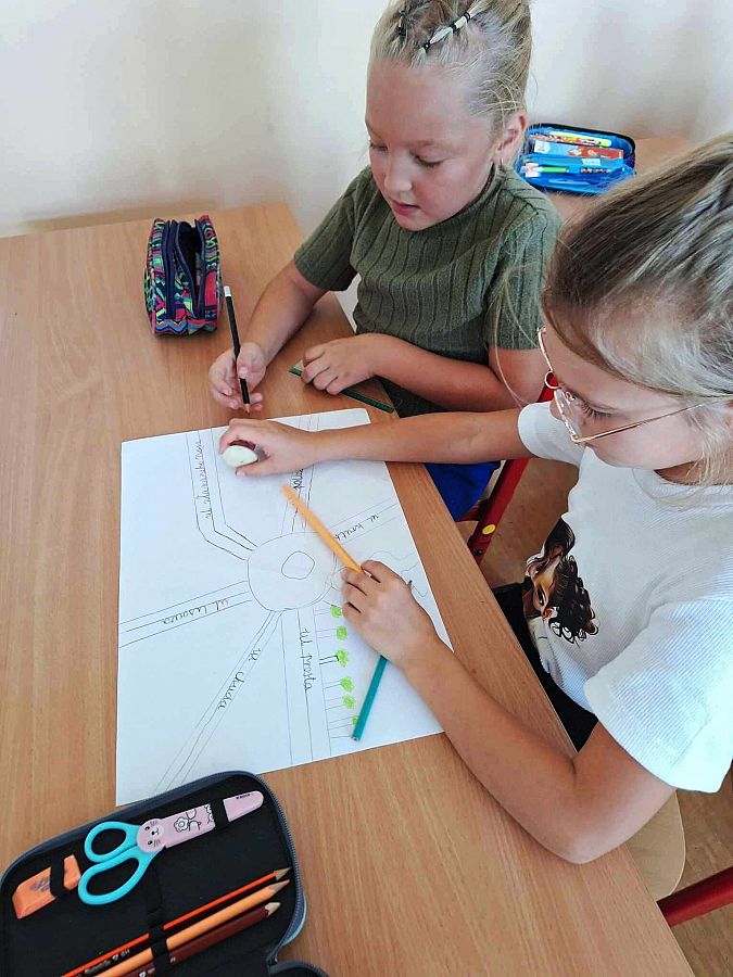- Uczniowie, korzystając z makiety, wspólnie budują nowe elementy, które mogą poprawić życie na ulicy Humorków (np. plac zabaw, biblioteka, szkoła).