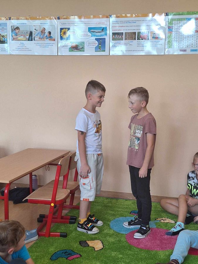- Uczniowie prezentują swoje prace (makiety, domy, scenki) podczas zajęć. Tworzenie wystaw pozwala dzieciom rozwijać umiejętność autoprezentacji oraz wzmacnia ich pewność siebie.