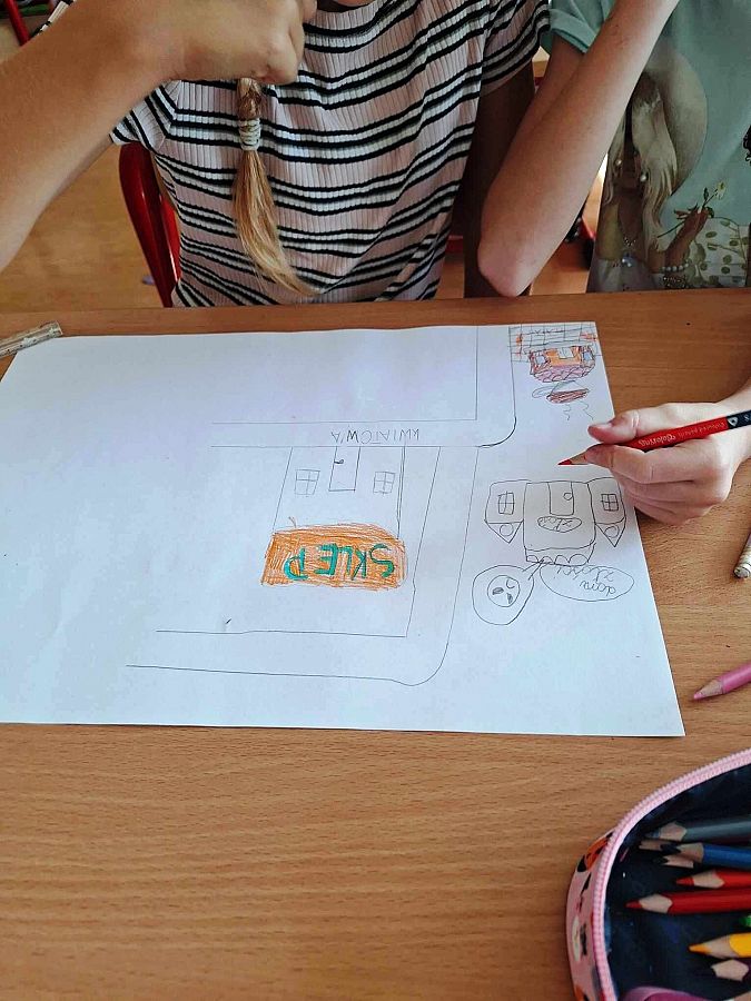 Uczniowie tworzą swoje własne projekty domów postaci oraz rysunki, które przedstawiają bohaterów i ich cechy. Dzięki temu mają szansę na samodzielną refleksję i rozwijanie wyobraźni.