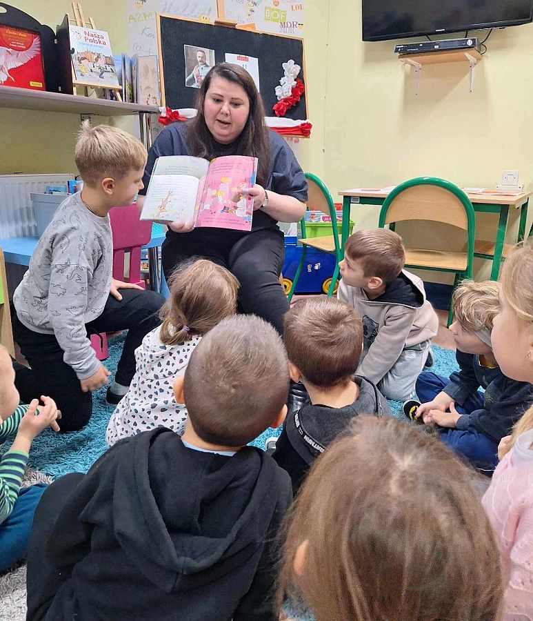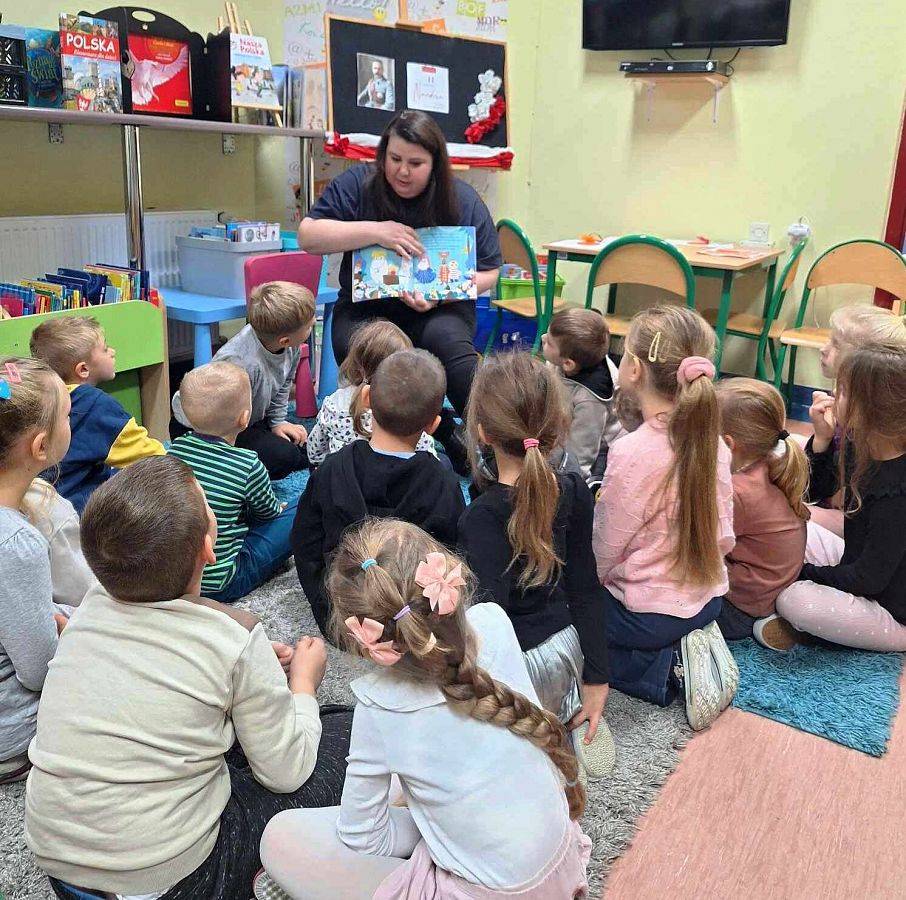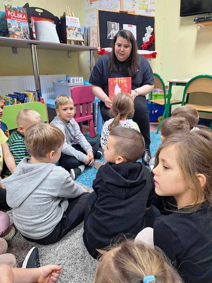 Podczas spotkania przybliżyliśmy także dzieciom temat Niepodległej Polski. Dzięki teatrzykowi kamishibai z opowieścią „Lech, Czech i Rus” przedszkolaki mogły w interesujący sposób poznać legendę o początkach naszego kraju.