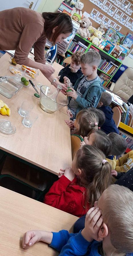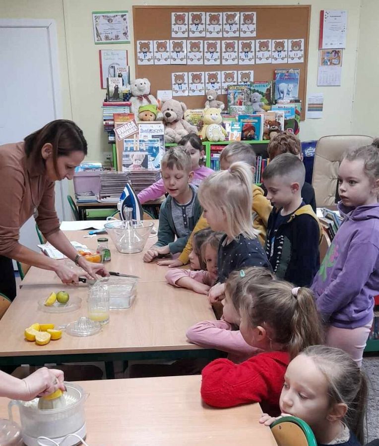 Dzisiaj, uczniowie z klasy 1a wzięli udział w kolejnym fascynującym spotkaniu z cyklu „Czytamy – doświadczamy”! Spotkanie w bibliotece poświęcone było CYTRYNIE. Dowiedzieliśmy się, jak skomplikowana jest budowa tego owocu. Przeżyliśmy prawdziwą (kwaśnąJ) przygodę, wyciskając soczysty sok z cytryny i delektując się jego smakiem. Podczas eksperymentów odkryliśmy fascynujące fakty, takie jak to, dlaczego cytryna unosi się na wodzie, podczas gdy limonka tonie. Napisaliśmy nawet tajemną wiadomość i dowiedzieliśmy się, dlaczego sok z cytryny staje się bardziej widoczny pod wpływem ciepła. Naszą lekcję zakończyliśmy spektakularnym doświadczeniem – stworzyliśmy cytrynowy wulkan, który zrobił na nas wybuchowe wrażenie!