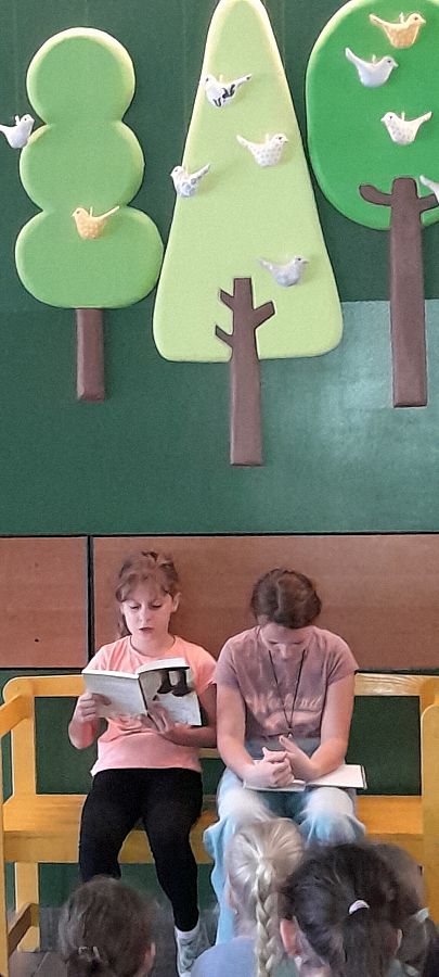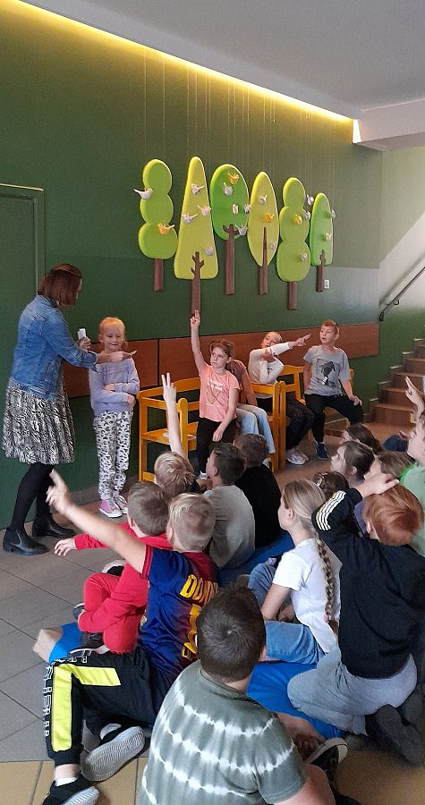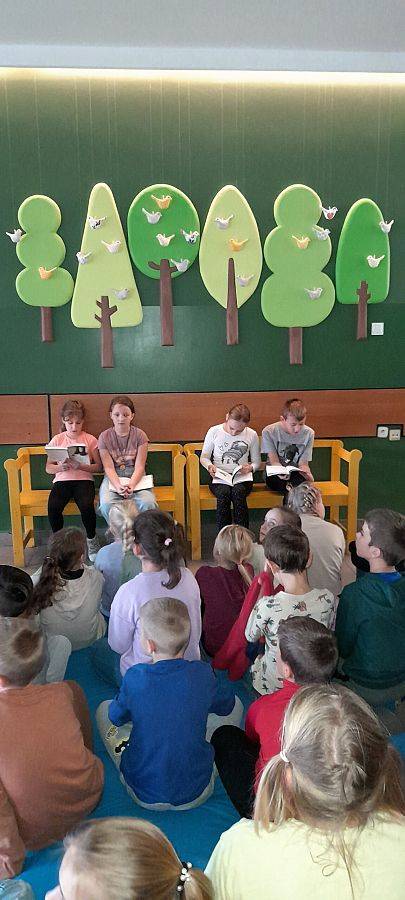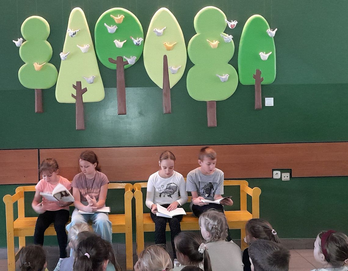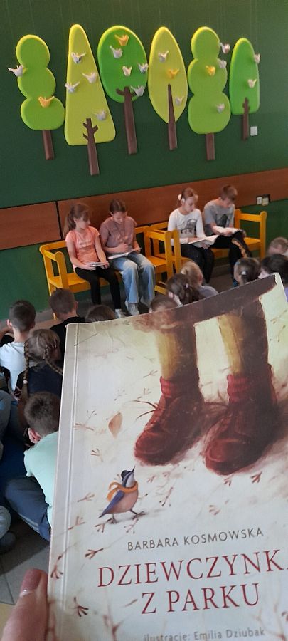 O wspomnianej książce opowiedzieli równolatkom z klasy 3a uczniowie z klasy 3b. Na szkolnym korytarzu, w parkowej scenerii, przeczytali im fragmenty książki. Chętni wyrażali swoje emocje w kalamburach oraz w rysunku.