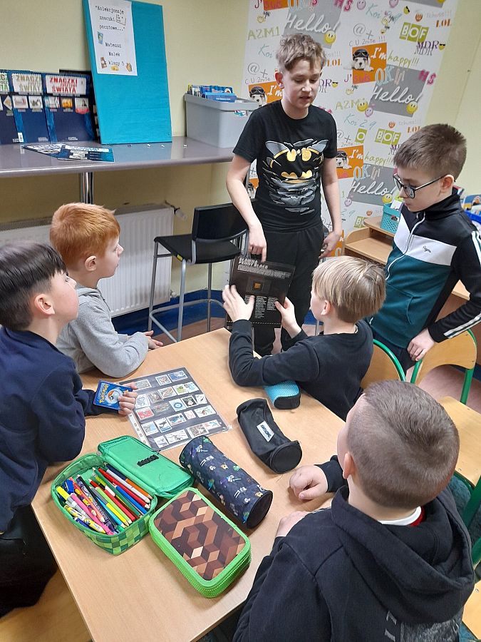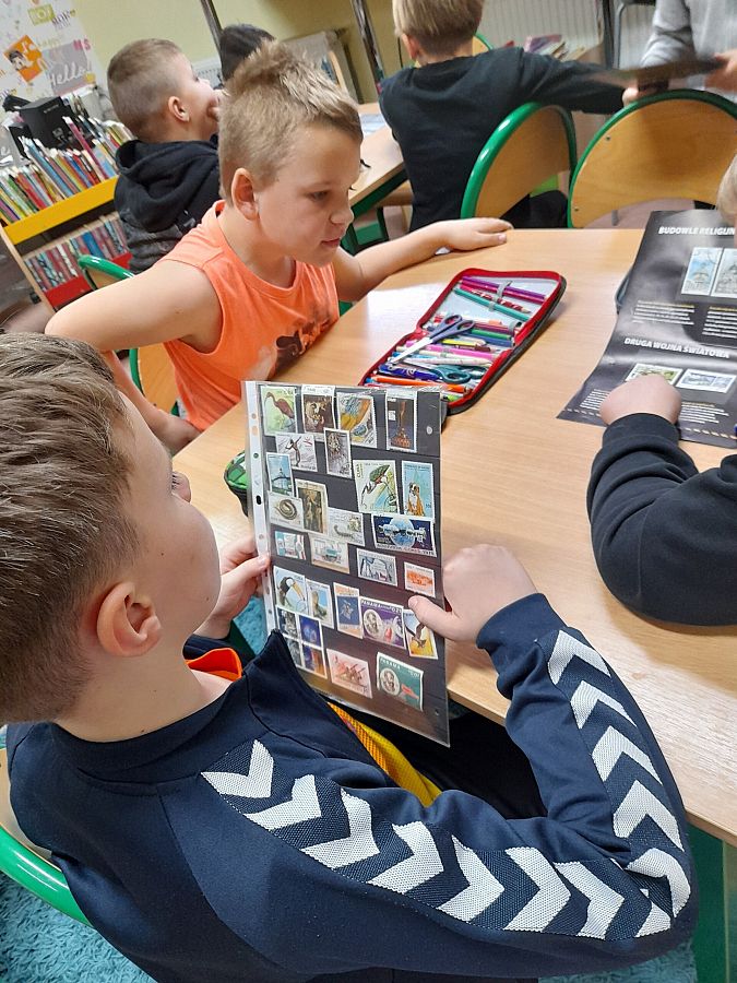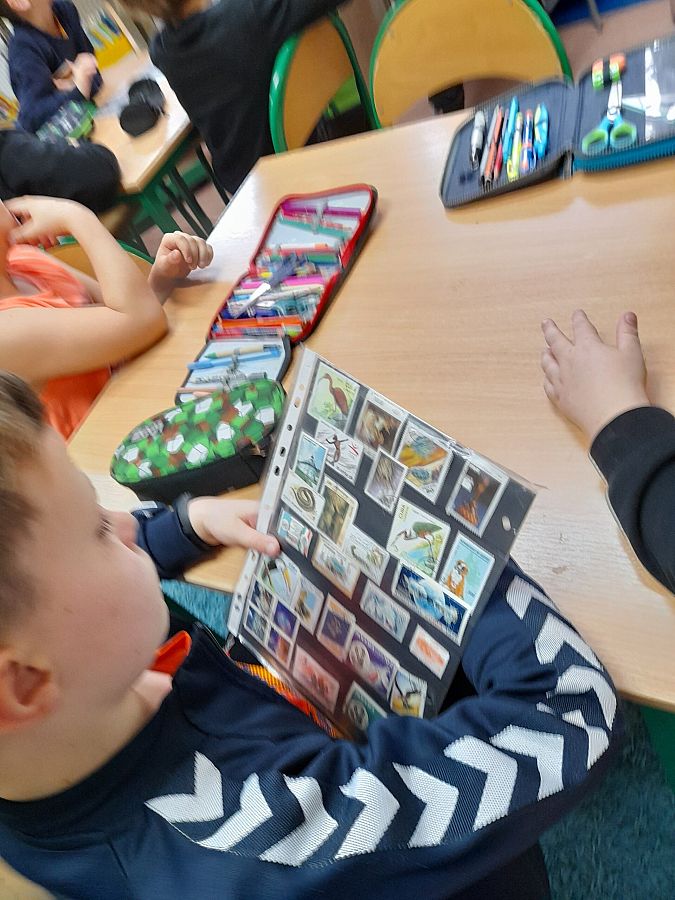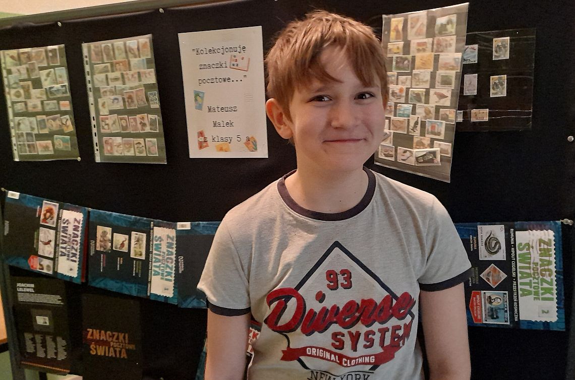 W dniu dzisiejszym swoją pasją do filatelistyki pochwalił się, przez uczniami z klast 2 b, Mateusz Malek z klasy 5 a.