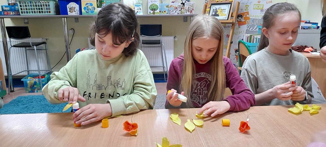 Następnie uczestnicy spotkania przystąpili do zajęć plastycznych, podczas których tworzyli symbol powstania - żonkile. Była to okazja nie tylko do artystycznego wyrazu, ale także do oddania hołdu bohaterom powstania i upamiętnienia ich właśnie w ten sposób.
