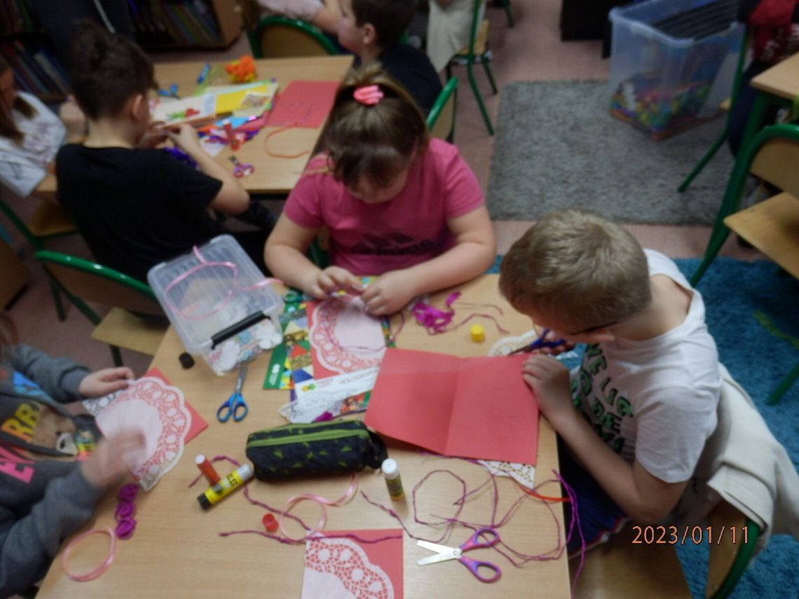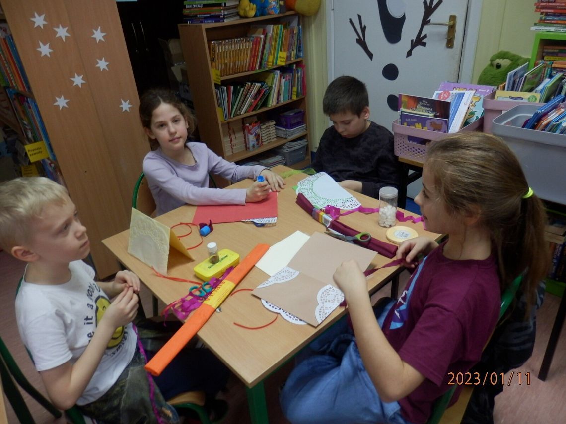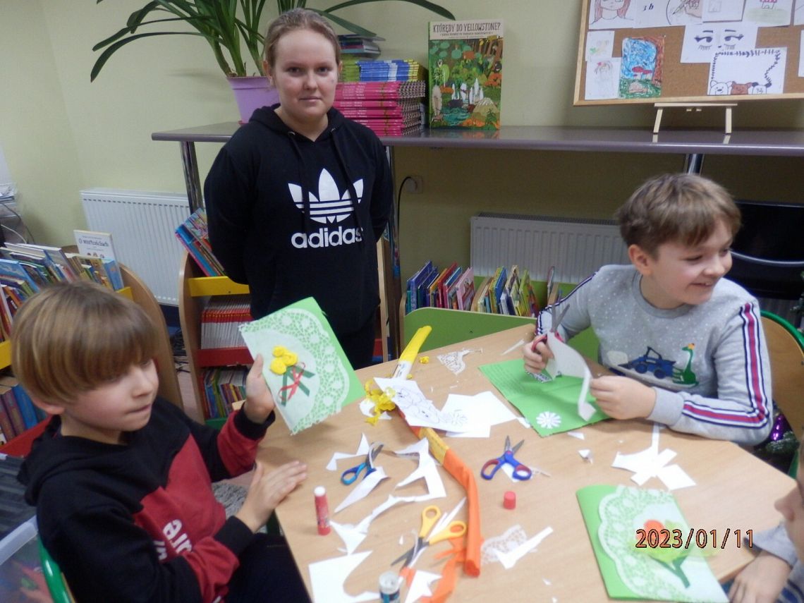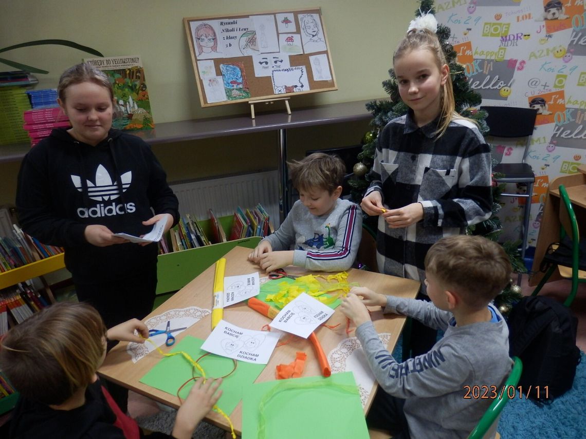 Laurka to dla Babci i Dziadka bezcenny upominek. Sposobów na ich wykonanie jest mnóstwo, a jeden z nich poznali dzisiaj w bibliotece uczniowie z klasy 3 a. Swoimi umiejętnościami plastycznymi pochwaliły się przed nimi Lena i Marcelina z klasy 5 b. Dziewczyny zaproponowały laurki zdobione papierowymi serwetkami, kwiatami oraz kokardkami. Oryginalne i pełne miłości miłości kartki, na pewno sprawią Dziadkom ogromną radość!