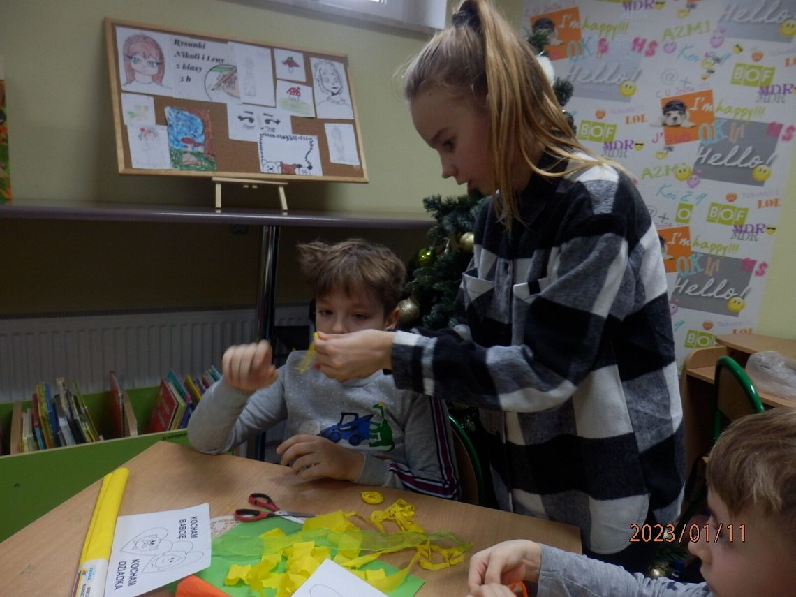 spotkanie warsztatowe w klasie 3 a z udziałem uczennic z klasy 5 b, Leny i Marceliny