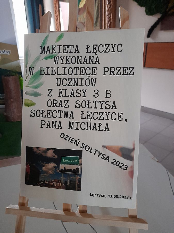 W dniu 13.03., z okazji Dnia Sołtysa, uczniowie z klasy 3 b wraz z wychowawczynią, sołtysem sołectwa Łęczyce, Panem Michałem oraz Paniami Bibliotekarkami postanowili utrwalić obraz Łęczyc. Wcielili się w architektów i wykonali makietę ważniejszych budynków miejscowości. Dzięki połączeniu wiedzy i wyobraźni powstał niezwykle oryginalny projekt.