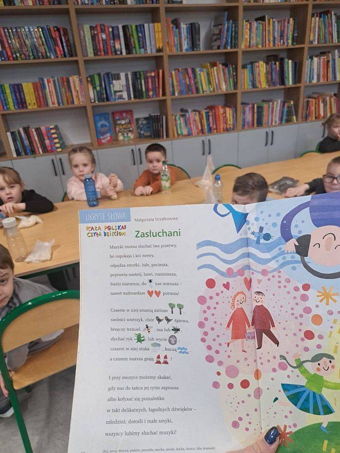 Dzieci wsłuchały się również w piękny wiersz pt. „Zasłuchani” autorstwa Małgorzaty Strzałkowskiej , zaczerpnięty z czasopisma "Świerszczyk".