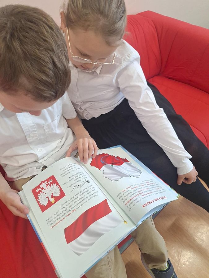 Następnie dzieci przeglądały i czytały książki, rozwiązywały także krzyżówki związane z Polską. Na zakończenie zajęć dzieci wyklejały flagę Polski, ucząc się przy tym o jej symbolice i znaczeniu.