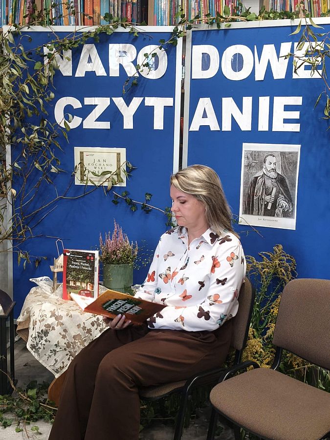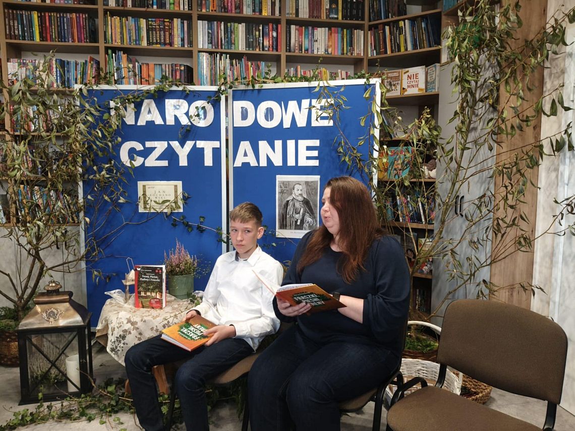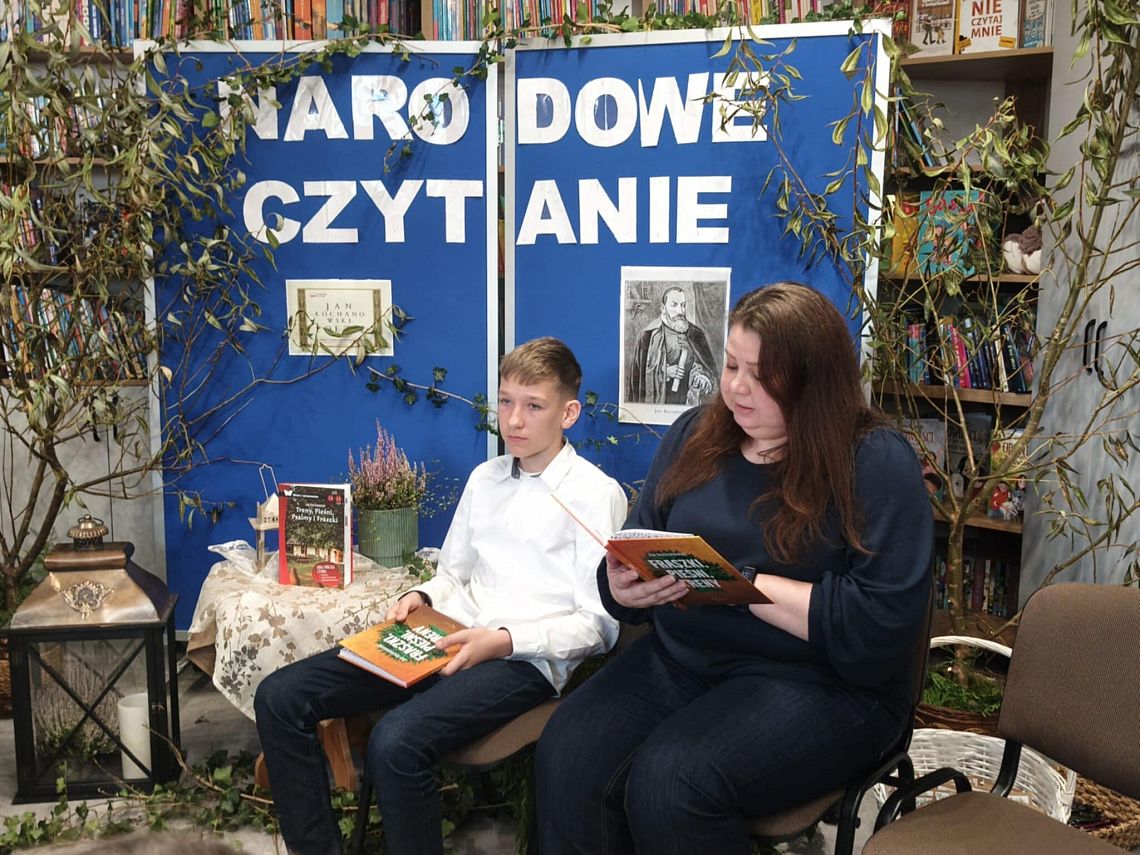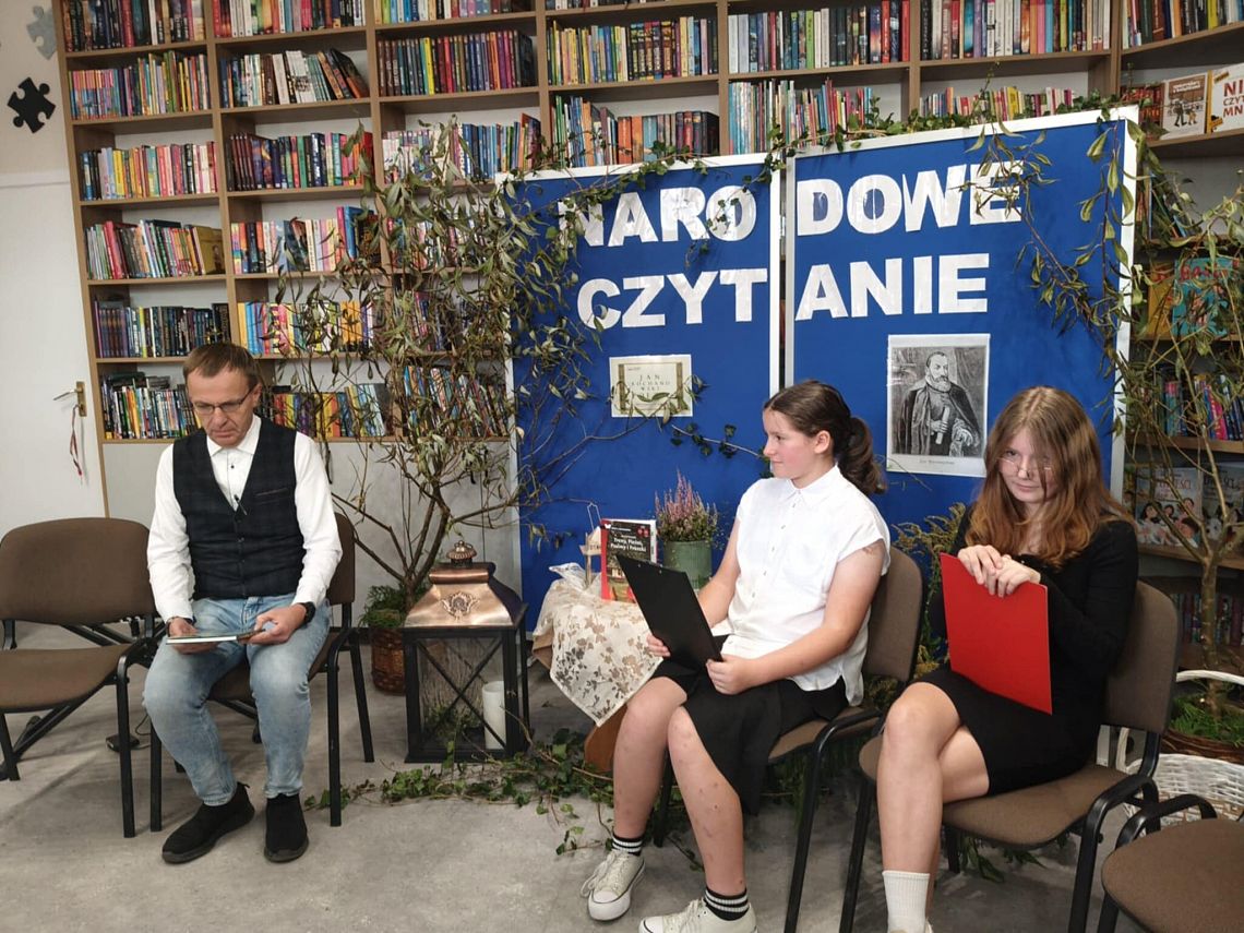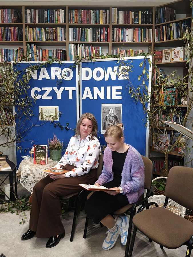 W odnowionej bibliotece odbyło się wyjątkowe spotkanie z okazji Narodowego Czytania 2025 oraz Ogólnopolskiego Dnia Głośnego Czytania. Gości powitała Dyrektor szkoły, Mirosława Wieczorek, a następnie wspólnie odkrywaliśmy twórczość Jana Kochanowskiego. Swoje interpretacje poezji Kochanowskiego zaprezentowali: