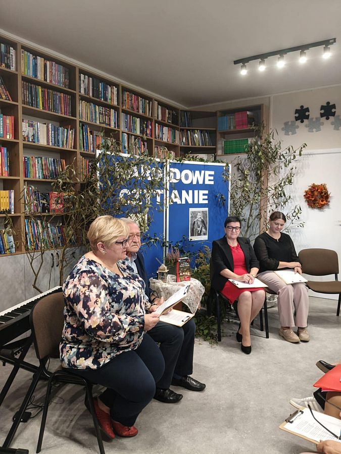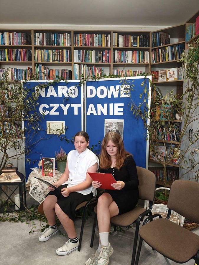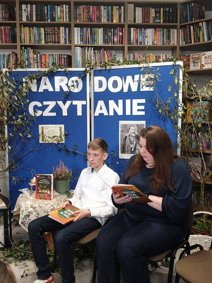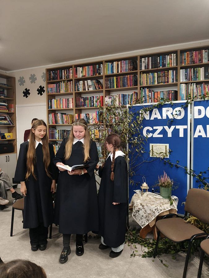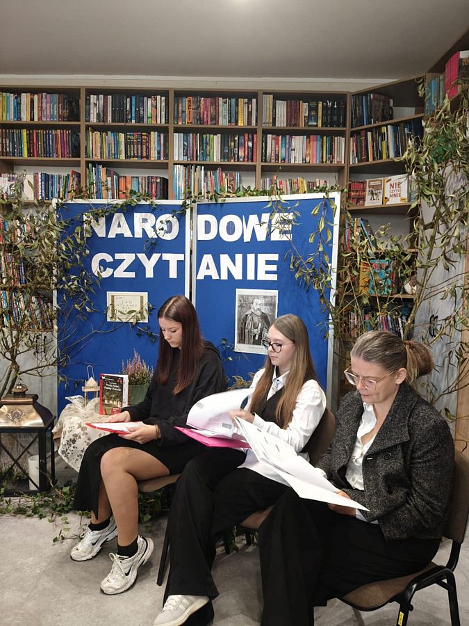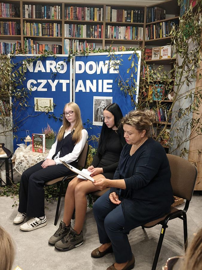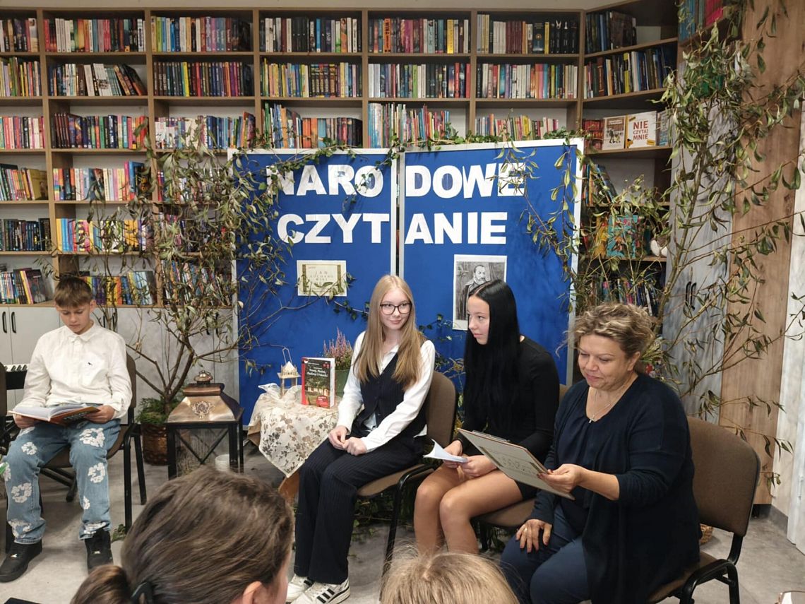 W odnowionej bibliotece odbyło się wyjątkowe spotkanie z okazji Narodowego Czytania 2025 oraz Ogólnopolskiego Dnia Głośnego Czytania. Gości powitała Dyrektor szkoły, Mirosława Wieczorek, a następnie wspólnie odkrywaliśmy twórczość Jana Kochanowskiego. Swoje interpretacje poezji Kochanowskiego zaprezentowali: