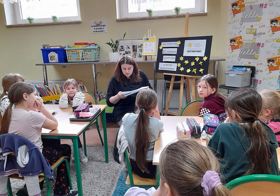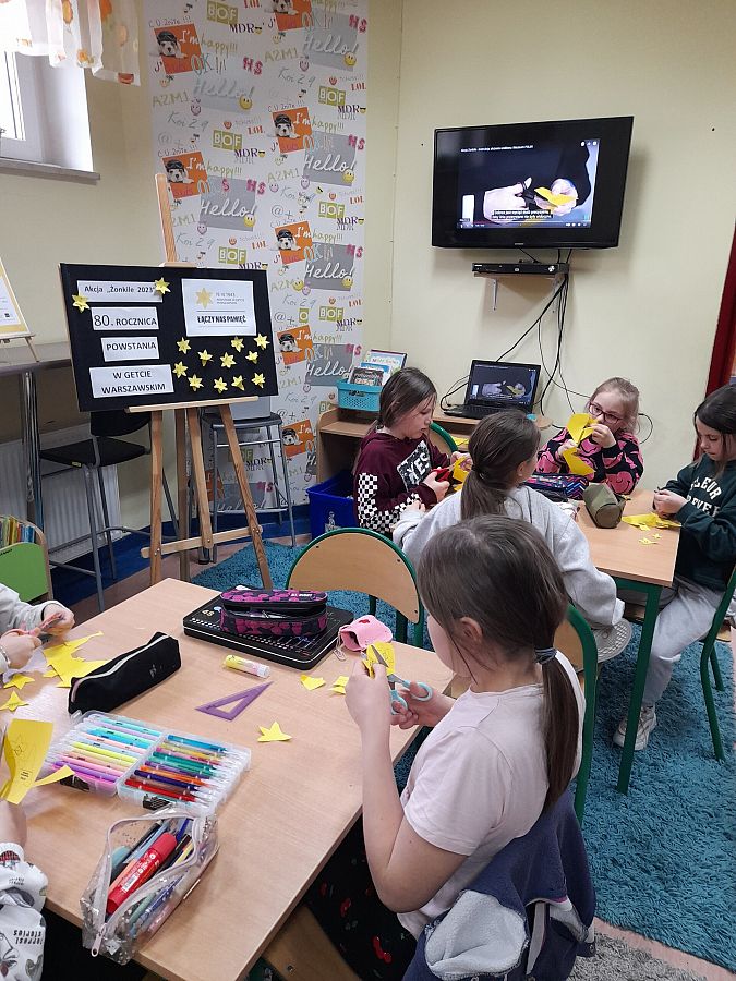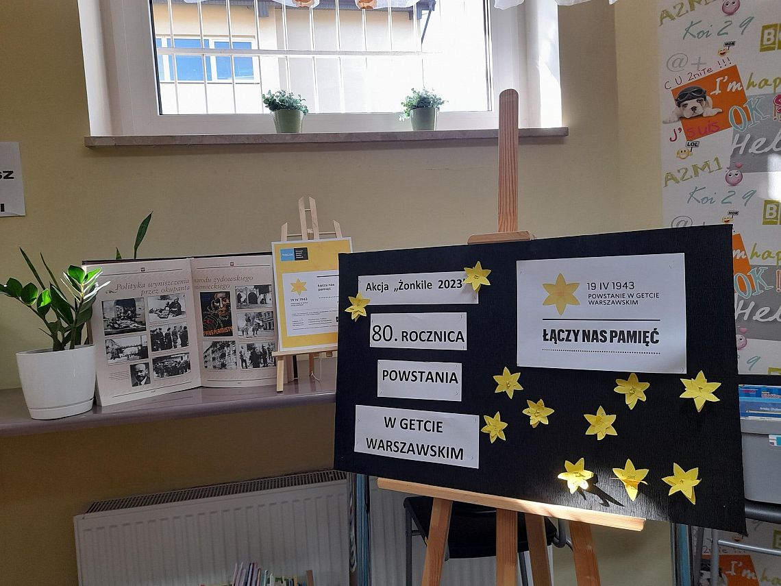 Na lekcjach plastyki uczniowie przygotowywali papierowe żonkile, wycinane i sklejane według instrukcji zaczerpniętej ze strony Muzeum Historii Żydów Polskich - Muzeum Polin. Wzięli także udział w okolicznościowych lekcjach historii, podczas których nauczyciel, w ciekawy sposób przybliżył im genezę Powstania w Getcie Warszawskim.