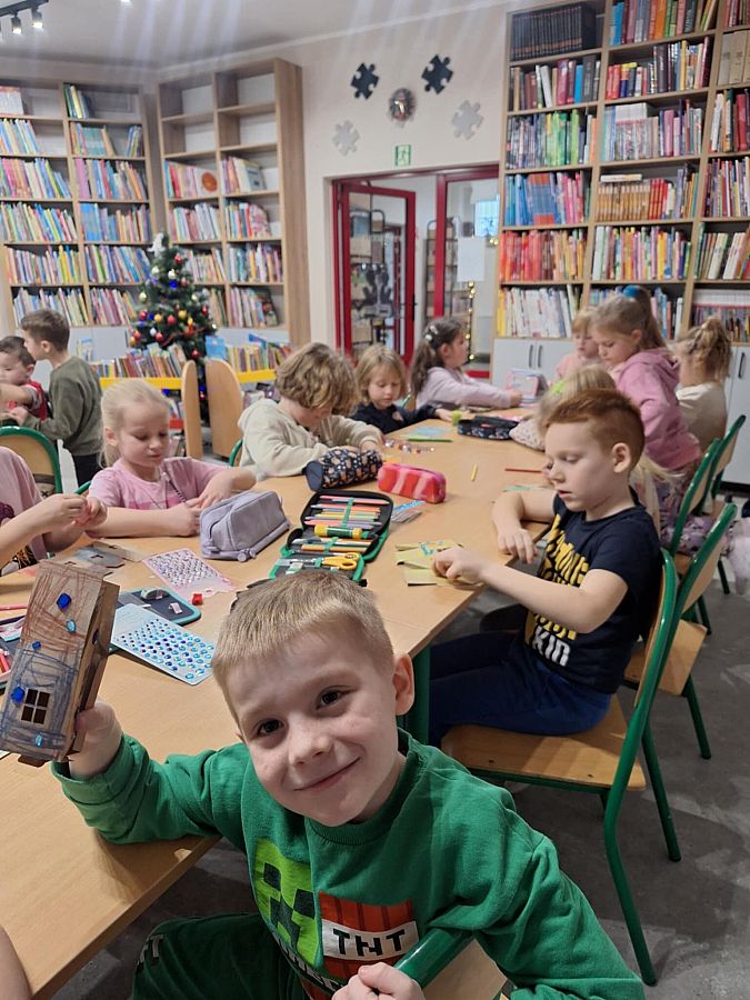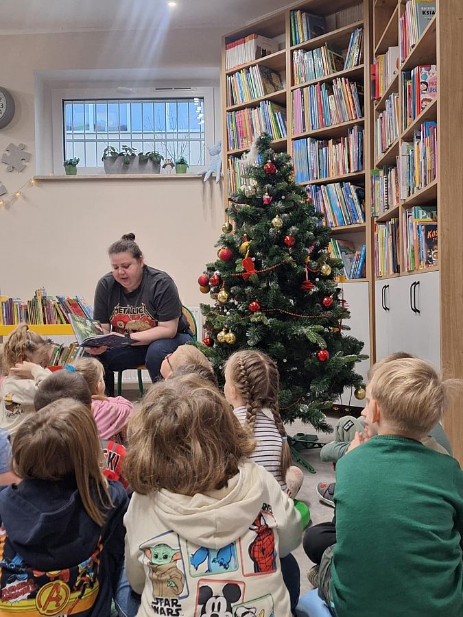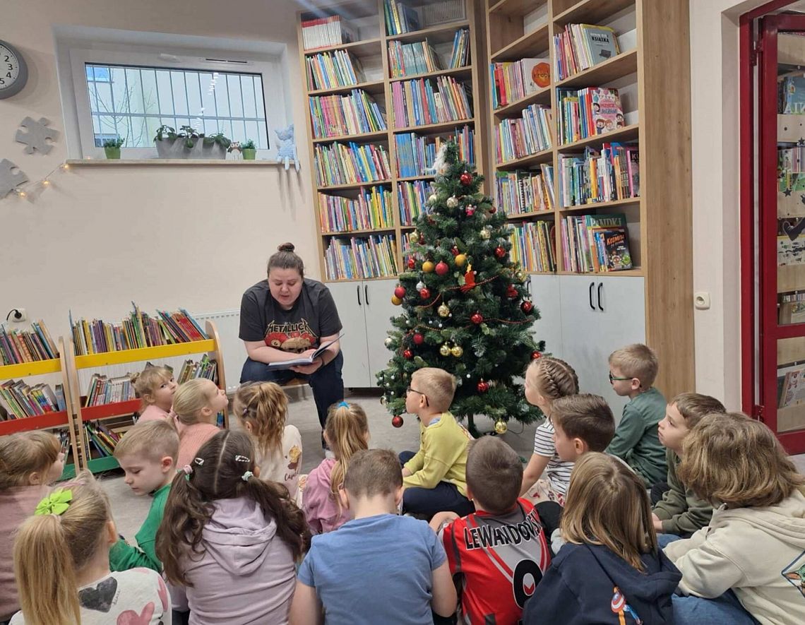 W grudniu koledzy „Polinki” – małej dziewczynki, spotkali się ponownie w bibliotece, tym razem w przedświątecznej atmosferze. Podczas zajęć dzieci poznały tradycje bożonarodzeniowe. O świątecznych zwyczajach opowiedziała im Pani Agnieszka z Biblioteki Publicznej, czytając specjalnie przygotowaną opowieść.