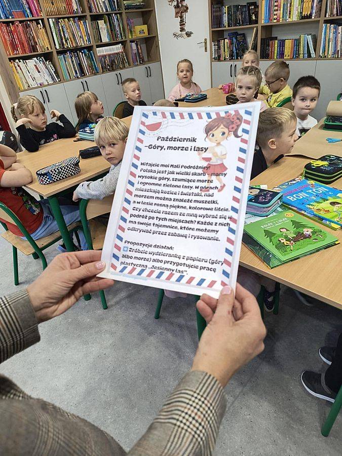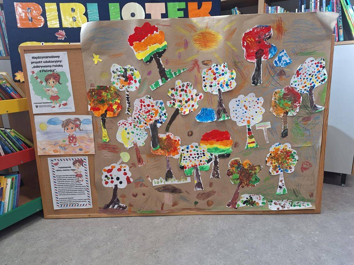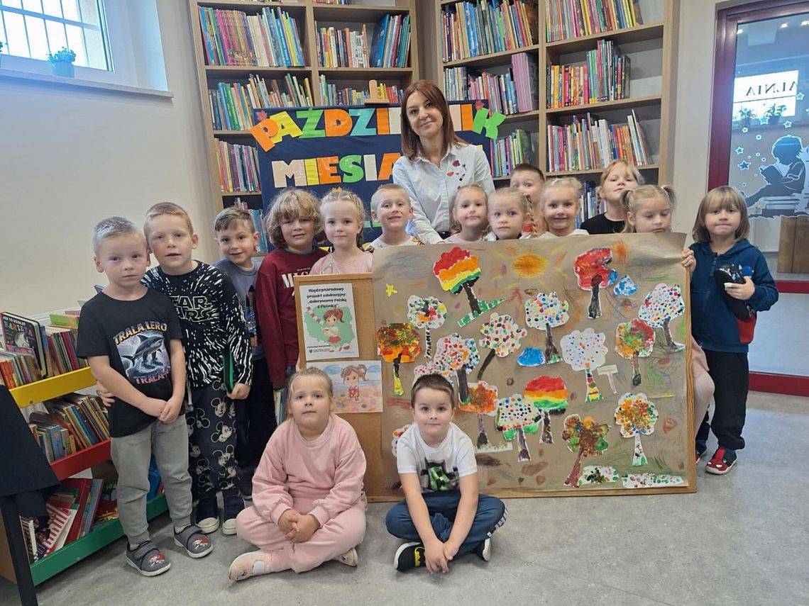 W październiku ponownie spotkaliśmy się z grupą 0 B w ramach projektu „Odkrywamy Polskę z Polinką”. Tym razem dzieci rozmawiały o krajobrazach -lasach, górach, jeziorach oraz oglądały książki tematyczne związane z przyrodą. Wykonały też piękne prace plastyczne przedstawiające jesienny las. Zajęcia były dodatkowo związane z obchodami Dnia Drzewa — to świetna okazja, by dzieci uwrażliwić na świat przyrody i jego zmiany jesienią.