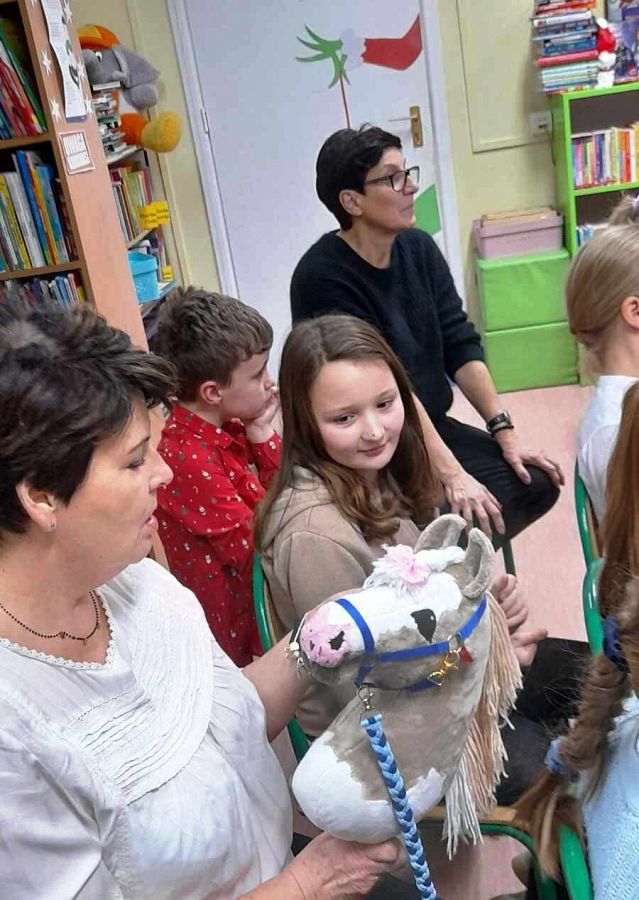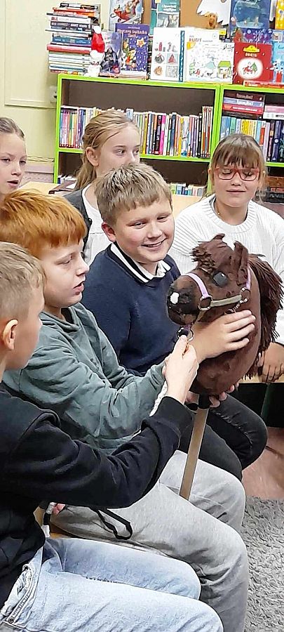 Dzisiaj w naszej bibliotece odbyło się wyjątkowe spotkanie uczniów z klasy 3 b z niezwykłą pasjonatką koni, Kariną Kusz, uczennicą klasy 6 a. To niezwykłe wydarzenie miało na celu przybliżenie zgromadzonym fascynującego świata, w którym Karina odnajduje radość i spełnienie – świata koni.