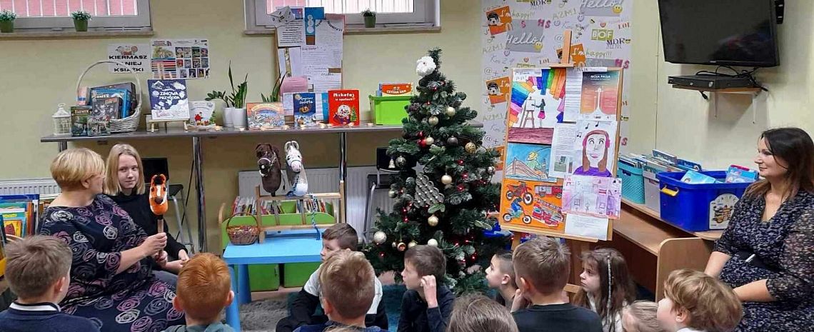 spotkanie biblioteczne klasy 3 b z uczennicą Kariną Kusz