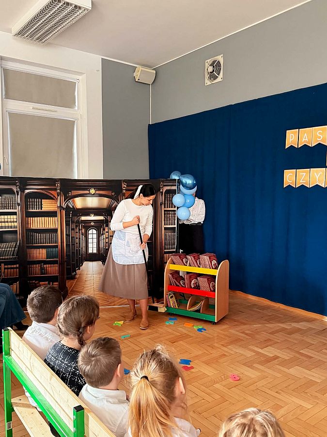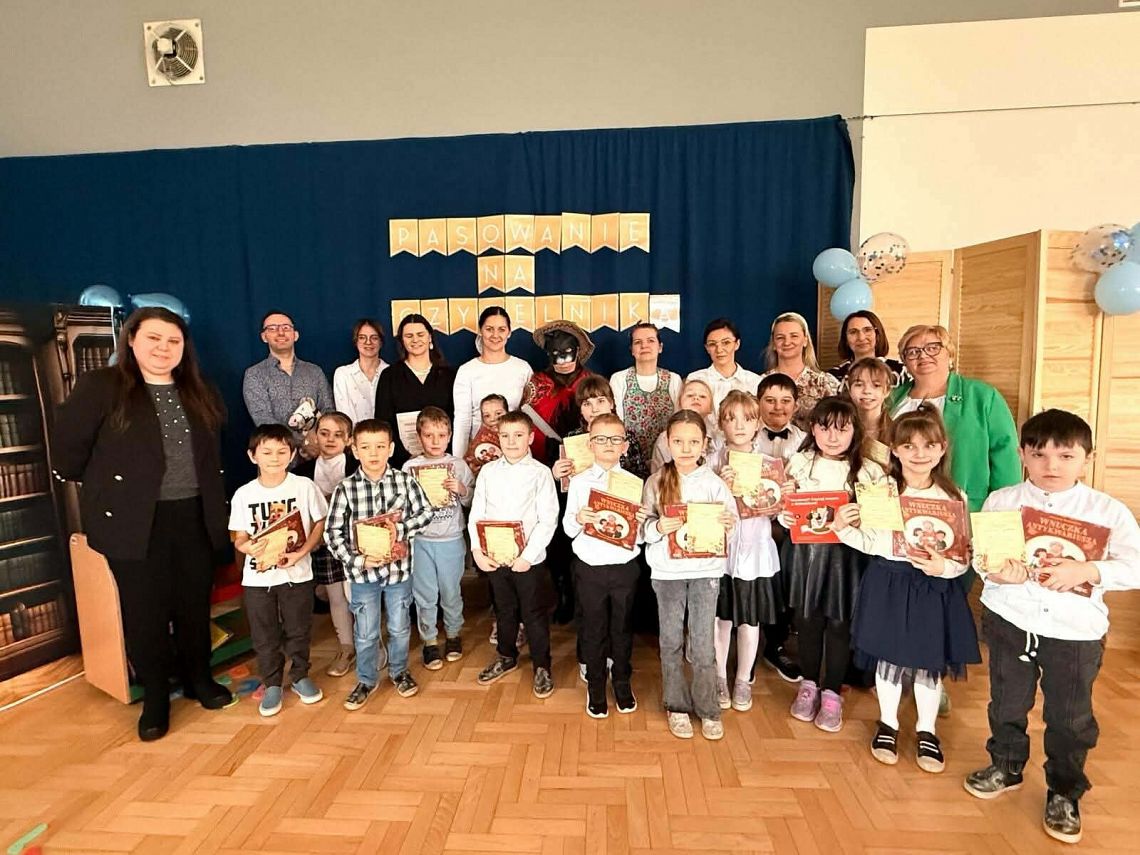 W dniu dzisiejszym w szkole odbyło się uroczyste pasowanie uczniów klas I na czytelników. Wydarzenie miało charakter nietypowy – przedstawienie o alfabecie przygotowali dla dzieci dorośli, angażując się zarówno w role aktorskie, jak i muzyczne. Mimo lekkiej tremy, wszystkie występy spotkały się z ogromnym entuzjazmem najmłodszych widzów.
