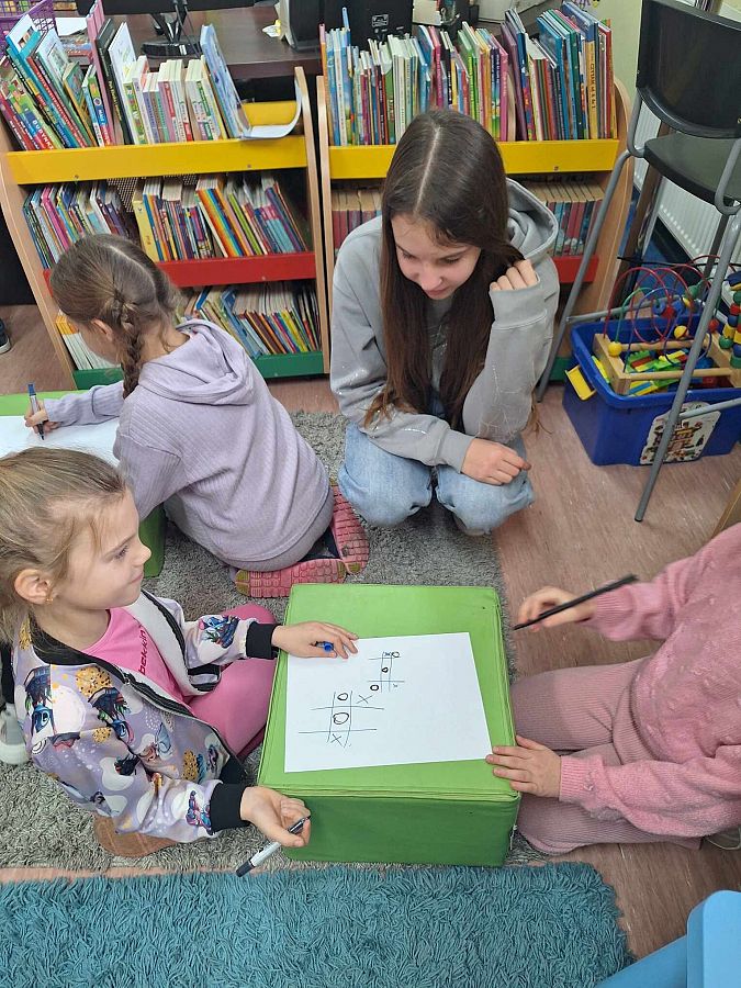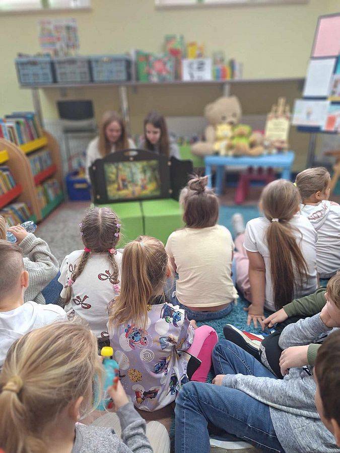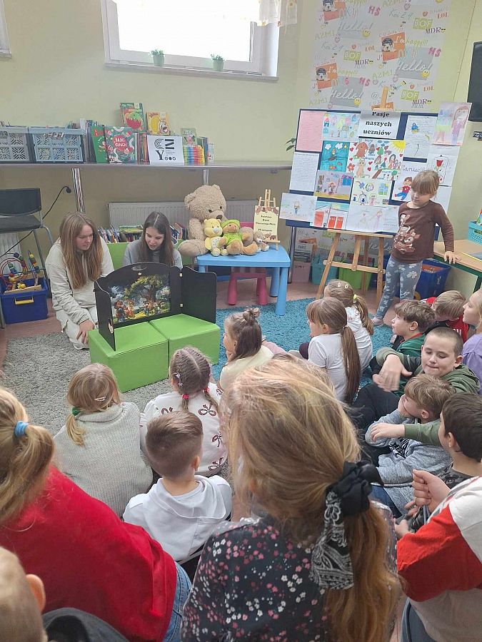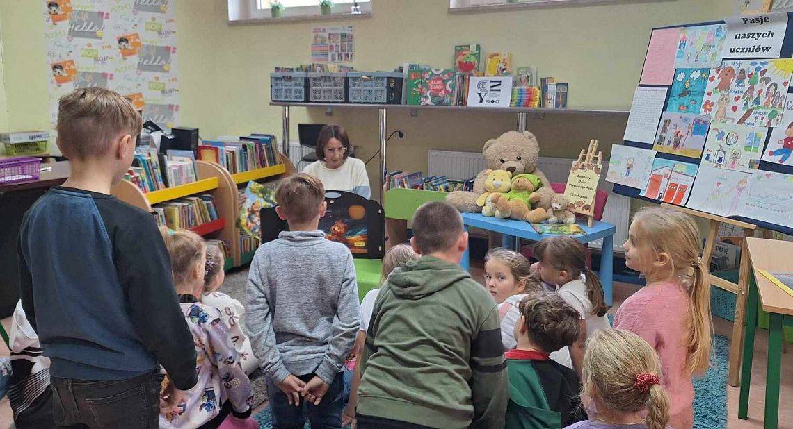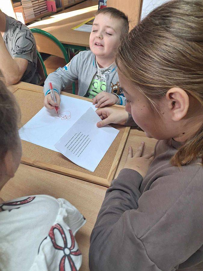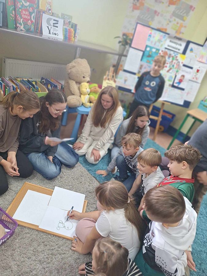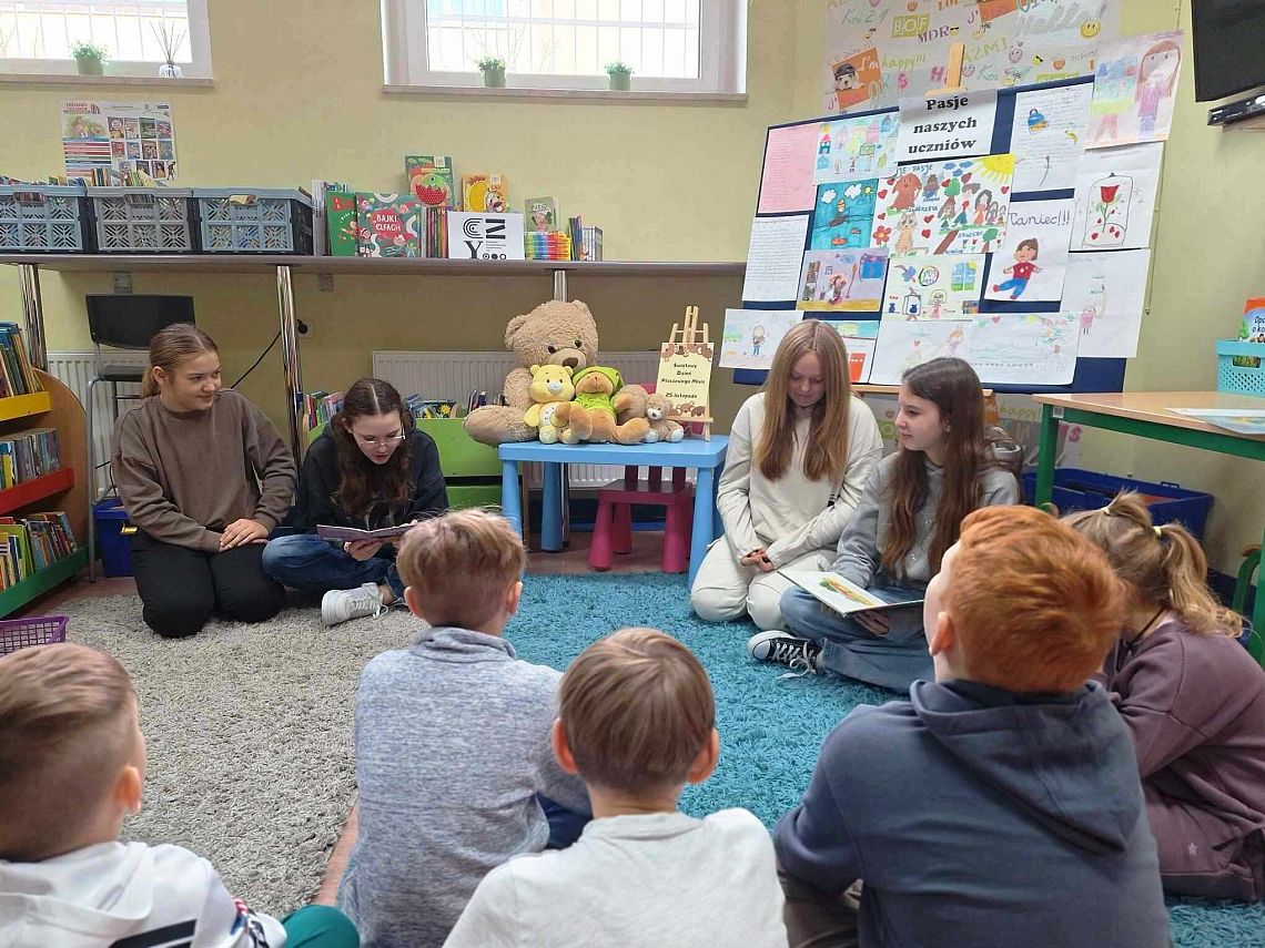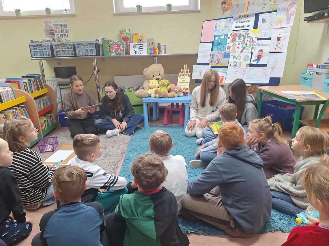 Na przerwach dziewczyny z kółka bibliotecznego – Edyta, Amelia, Marcelina i Agata – przeprowadziły dodatkowe zajęcia dla dzieci, rozwijając ich zainteresowanie książkami i wspierając kreatywność. Wszystko to odbyło się we współpracy z Biblioteką Publiczną, w ramach Narodowego Programu Rozwoju Czytelnictwa. To był dzień pełen uśmiechów i wspaniałych wrażeń!