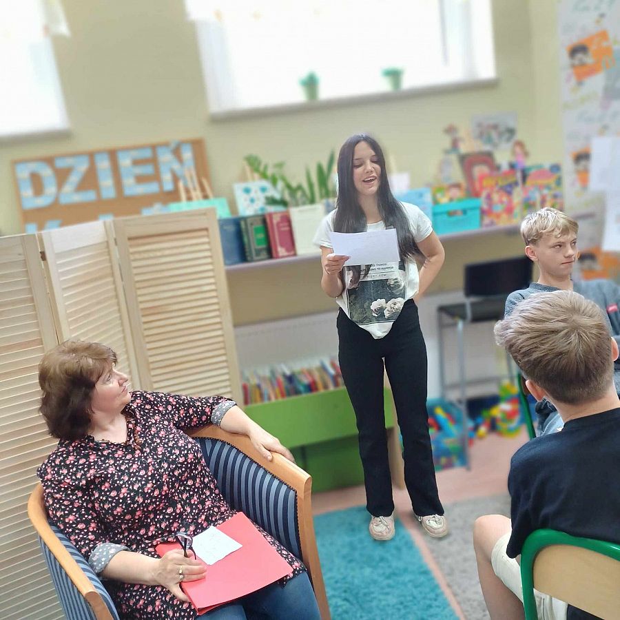 W bibliotece odbyło się wyjątkowe spotkanie z panią Marią, lokalną poetką, mieszkanką Łęczyc. W wydarzeniu uczestniczyli uczniowie klasy 7a.